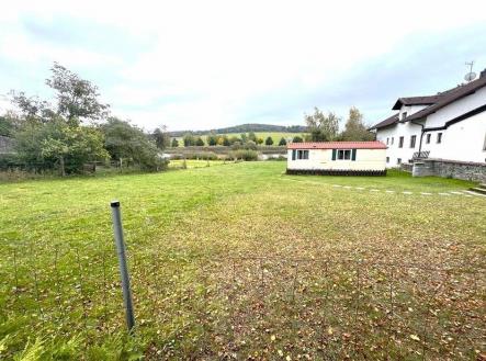 Soubor pozemků o celkové výměře 889 m2 v zastavěné části obce Všeruby, určený platným územním plánem obce jako zastavitelné území, tzv. stabilizovaná plocha pro stavbu k trvalému bydlení v zastavěném území obce s funkčním využitím plochy pro bydlení (BO). Možnost realizace budoucí výstavby samostatného rodinného domu nebo domu pro rodinnou rekreaci s vedlejšími a doplňkovými stavbami. Pozemek navazuje po celé šířce (S) na veřejnou příjezdovou komunikaci silnici II. třídy se zpevněným asfaltovým povrchem a na klidové obecní prostranství (pronajatá plocha) s navazující vodní plochou místního rybníku s možností převodu nájmu navazujícího pozemku na nového vlastníka a násl. případného odkupu pozemku. Lokace pozemku v mírně svažitém terénu s orientací pozemku a svažitosti na jihovýchod s možností zbudování příjezdu na pozemek ze severní části pozemku z navazující komunikace. Pozemek navazuje na okolní zástavbu rodinných domů a penzionu, plochu veřejného klidové prostranství a plochy zahrad. Pozemek s udržovaným travním porostem je oplocen, se stávající vedlejší stavbou mobilního domku s možností odprodeje „mobilheimu“ spolu s pozemkem. K pozemku je možno zbudovat budoucí přípojky na stávající veřejné rozvody splaškové kanalizace, veřejného vodovodu, rozvody elektřiny, plynu a telekomunikační rozvody u hranice pozemku. Nabízený pozemek je situován v obci se základní dopravní dostupností a vybaveností ve vesnické, přírodní lokalitě se zázemím malé pohraniční obce (silniční hraniční přechod), cca 5 km od malého města Kdyně, cca 15 km od okresního města Domažlice s kompletními službami, veřejnou infrastrukturou a kompletní občanskou vybaveností. Předností nabízeného pozemku je situování pozemku v okrajové zástavbě, v blízkosti vodní plochy, lokace obce v blízkosti hraničního přechodu CZ/SRN, dostupnost pozemku, možnost napojení na kompletní inženýrské sítě a možnost realizace výstavby rodinného domu bez zásadních regulativů. Inženýrské sítě: dostupnost pozemku z veřejného zpevněné komunikace, u hranice pozemku možnost napojení na stávající rozvody elektrické sítě (vzdušné vedení), veřejnou splaškovou kanalizaci, veřejný vodovod, přípojka na plyn zbudována v pilíři na hranici pozemku a příp. možnost napojení na telekomunikační rozvody.