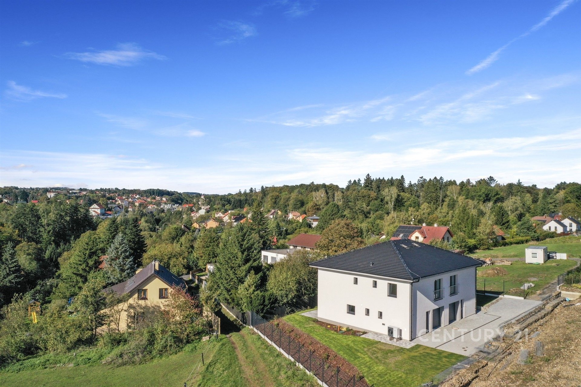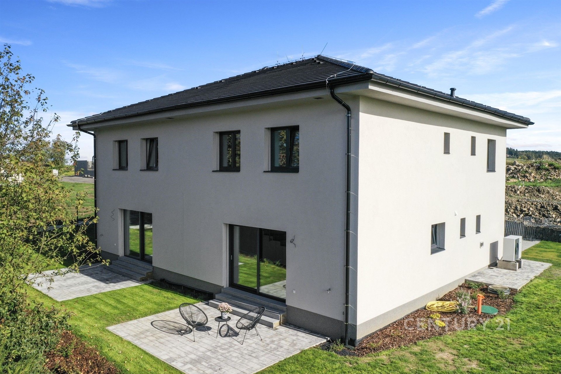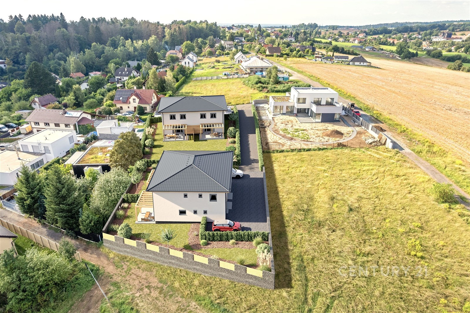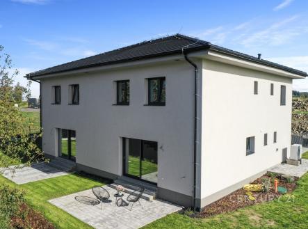 Hledáte příjemné bydlení klidně i pro početnější rodinu? Ráda bych Vám představila NOVOSTAVBU rodinného domu o dvou bytových jednotkách, která se nachází na jednom z nejkrásnějších míst ve Všestarech, okres Praha – východ. Dvoupodlažní jednotka nabízí velkorysou dispozici 5+kk s dvěma koupelnami, terasou, zahrádkou a garáží. Zastavěná plocha má rozlohu 89 m2, užitná plocha činí 145 m2 a velikost pozemku je 517 m2. V přízemí se nachází zádveří, chodba, technická místnost, koupelna se sprchovým koutem, samostatná toaleta, komora a především prostorný obývací pokoj s kuchyňským koutem s přímým vstupem na terasu. Ve druhém podlaží, do něhož se dostanete po schodišti, naleznete čtyři neprůchozí pokoje, šatnu, koupelnu s vanou a toaletu. Nemovitost na Vás udělá velký dojem již při první návštěvě, zaujme příjemnou atmosférou i kvalitními materiály, které zde byly použity: – Zařizovací předměty (HansGrohe) – Příprava na elektromobilitu (na fasádě i uvnitř garáže) – Podlahové topení Rehau – Masivní schodiště z jasanu – Přípojky (elektřina, voda, kanalizace) – samostatné měření každé jednotky – Středová stěna je postavena ze 2 samostatných akustických zdí oddělených zvukovou vložkou – Interiérové dveře Sapeli bezfalcové se zvýšenou odolností ve vlhkém prostředí koupelen – Dva venkovní kohouty značky Kemper, kde není nutnost vypouštění před zimou – Retenční nádrž na 3 m3 – Tepelné čerpadlo Vaillant aro THERM split VWL AS vzduch /voda – Druhé patro je plnohodnotné (použití monolitických stropů s maximální možnou zvukovou a tepelnou izolaci) Nemovitost je kompletně nachystaná k nastěhování, chybí jen kuchyňská linka. V tuto chvíli je možné koupit pouze jednotku A (pravou) o dispozici 5+kk, druhá jednotka je již PRODANÁ. Nemovitost se nachází na rozhraní Všestar a Strančic, což je velmi vyhledávaná lokalita pro komfortní bydlení v blízkosti přírody a přitom nedaleko od hlavního města. Všestary nabízejí základní občanskou vybavenost a sousední Strančice (vzdálené jen 300 m) pak v docházkové vzdálenosti poskytují kompletní občanskou vybavenost – školu, školku, dětského i praktického lékaře, fotbalové a tenisové hřiště, restaurace, obchody, lékárnu, vlakové nádraží, cukrárnu, kadeřnictví. Tato lokalita vyniká čistým ovzduším, ale zamilujete si ji i pro nedaleký les či cyklostezky. Velkou výhodou je výborná dopravní dostupnost do centra Prahy – autem 20 minut (15. km D1), vlakem 35 minut na pražské Hlavní nádraží. Stanice vlaku je od domu vzdálena pouhých 10 minut chůze. Neváhejte a přijďte se o jedinečnosti tohoto bydlení přesvědčit na vlastní oči. Žije se tu opravdu dobře!