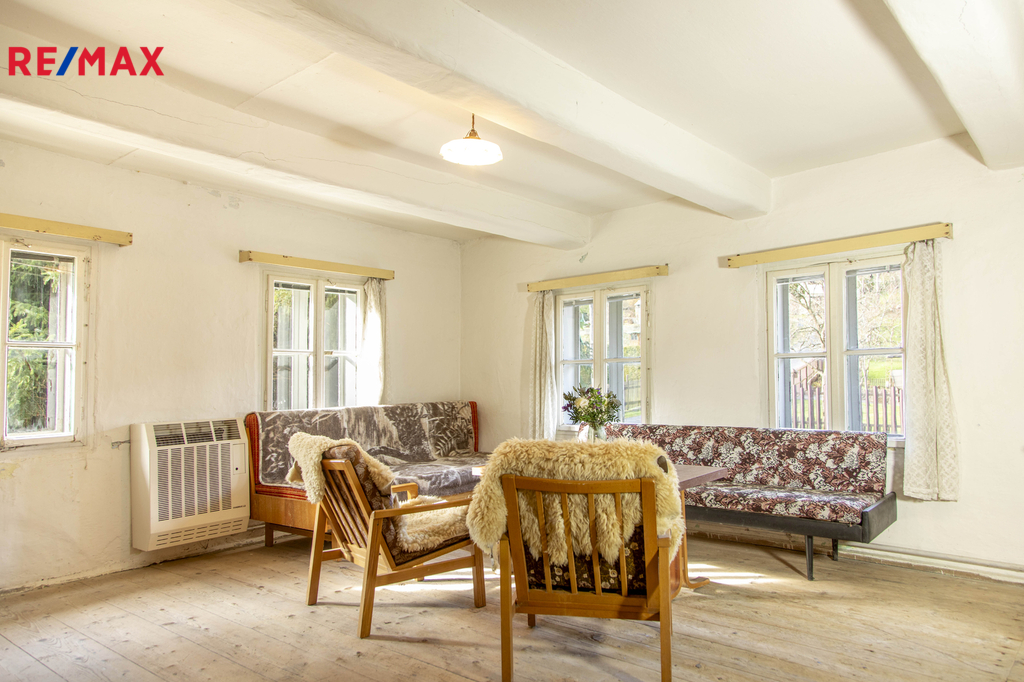 Nabízíme k prodeji chalupu, která se nachází v Semetíně, v klidné venkovské zástavbě a byla postavena na začátku minulého století. Jedná se o rodinný dům s číslem popisným, konstrukčně řešen jako roubená stavba. Stavba má obytnou část o výměře 61m², kterou tvoří vstupní zádveří, dvě místnosti, kuchyně s jídelnou a koupelna s wc. Z této části domu je možný vstup do původního chléva a garáže (celkem 60m²). Nabízí se zde také využití půdy (50m²) a při rekonstrukci zde vybudovat např. obytné podkroví nebo rovnou samostatnou bytovou jednotku. K dispozici jsou zde veškeré inž. sítě - vodovod, kanalizace, elektřina, plyn. Dům je z malé části podsklepen a je určen k celkové rekonstrukci anebo ho lze využít jako stavební pozemek, což platný územní plán umožňuje. Stavba sice není v perfektním technickém stavu, ale za to má velký potenciál pro realizaci rekonstrukce dle vlastních představ. Pozemek o rozloze 1.350m² obklopuje dům, jehož kouzlo umocňuje potok lemující hranici zahrady. Voda tiše šumí a dodává místu jedinečnou atmosféru. Stavba působí romanticky, intimně – dům má svou duši a vypráví příběh starých časů. Ideální pro ty, kdo hledají klid, pohodu a místo s charakterem. Pro více informací nebo domluvení prohlídky mne neváhejte kontaktovat.