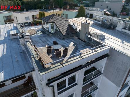 Pronájem nádherného, plně zařízeného bytu 3+kk s velkou terasou a parkováním před domem.