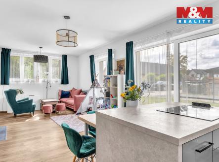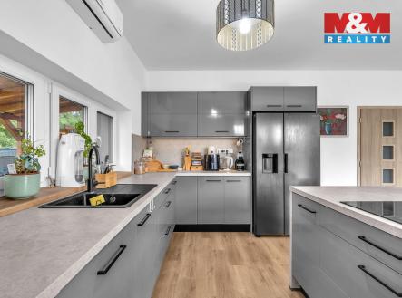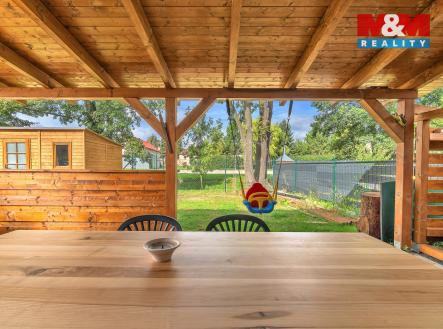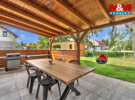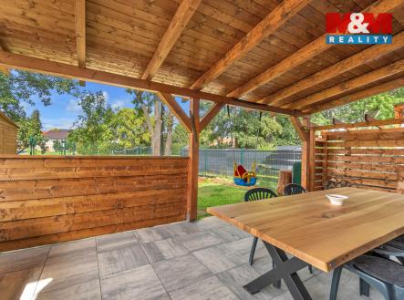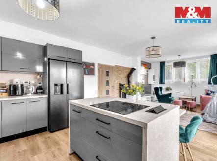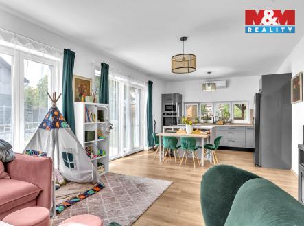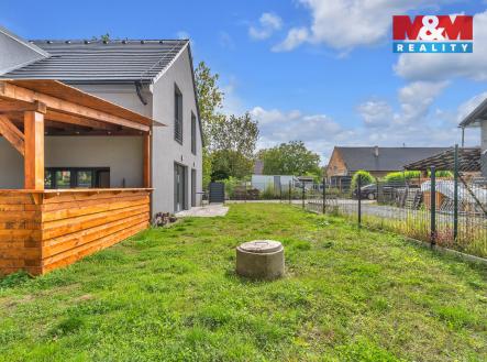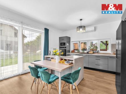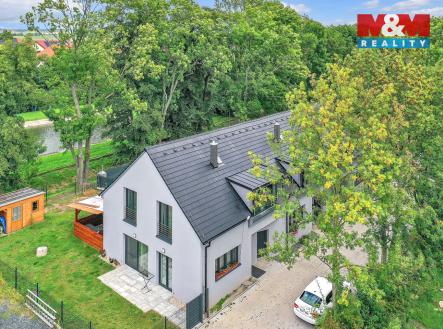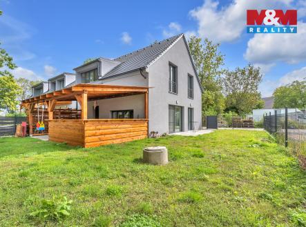 Nabízíme k prodeji moderní rodinný dům v klidné části obce Vykáň. Jedná se o rohovou část řadového dvoupodlažního domu, kolaudovaného v roce 2023. Dispozice 4+kk zahrnuje prostorný obývací pokoj s kuchyňským koutem, krbovými kamny a přímým vstupem na krytou terasu 28 m². V přízemí dále najdete chodbu, komoru, samostatné WC a technickou místnost. V patře se nachází tři ložnice, šatna a koupelna s bidetem, vanou, dvěma umyvadly a sprchovým koutem. Nad celým domem je pochozí půdní prostor, který slouží jako praktické úložné místo. Součástí pozemku 452 m² je nekrytá terasa 10 m², zahradní domek 9 m² s přístřeškem 9 m², dřevník u terasy a sklad 6 m² s vchodem vedle hlavního vstupu. Celý pozemek je oplocen a nabízí dostatek soukromí. Neváhejte a přijďte si prohlédnout tuto novostavbu, která čeká na svého nového majitele! Na návsi najdete úřad, obchod, autobusové spojení, a v budoucnu zde vznikne i školka. Autem je veškerá občanská vybavenost dostupná do 5 minut.