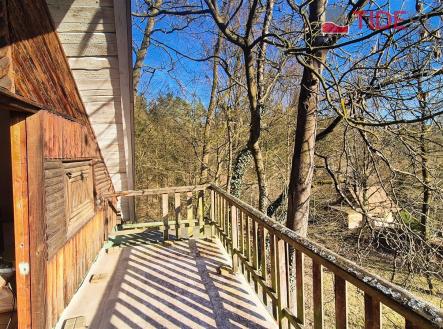 Máte rádi přírodu, klid a vůni lesa? Pak by Vás mohla zaujmout tato patrová chata, která se nachází v malebném údolí říčky Žehrovky, nedaleko obce Vyskeř – přímo v srdci Českého ráje. Leží na polosamotě, na okraji lesa, a přitom je pohodlně dostupná autem až k pozemku. Z místa je to jen pár kroků k turistickým trasám, které vás zavedou třeba ke známým výletním cílům jako je Pekařova brána, Věžický rybník, hrad Kost a mnoho dalších. Autobusová zastávka Pleskotský mlýn je vzdálená přibližně 200 metrů, nejbližší restaurace pak asi 400 metrů. Chata samotná stojí na pískovcové skále, má kamennou podezdívku a je částečně podsklepená. V přízemí i v patře najdete útulné verandy s krásným výhledem do zeleně. V hlavní obytné části vás zahřeje krb, nechybí ani malý kuchyňský kout s jídelnou. V podkroví se nacházejí dvě ložnice. Chata je napojena na elektřinu, vytápění zajišťují kamna a krb. Voda a kanalizace zde zatím nejsou, což ale mnohým jen podtrhne kouzlo chatového života v přírodě. Mírně svažitý pozemek o rozloze 425 m² je orientovaný na jih. Tuto nemovitost doporučujeme především těm, kteří hledají výjimečné místo s duší – ať už na víkendy, prázdniny, nebo jako únik z městského ruchu. Rádi Vám poskytneme více informací nebo se s Vámi domluvíme na prohlídce. Neváhejte se nám ozvat!