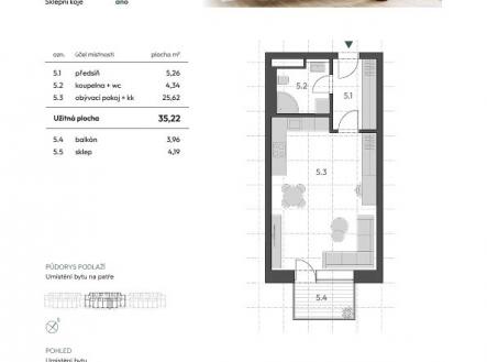 Prodej bytu 1+kk 35 m² s balkonem v novém projektu Rezidence Haná, Vyškov, sklep