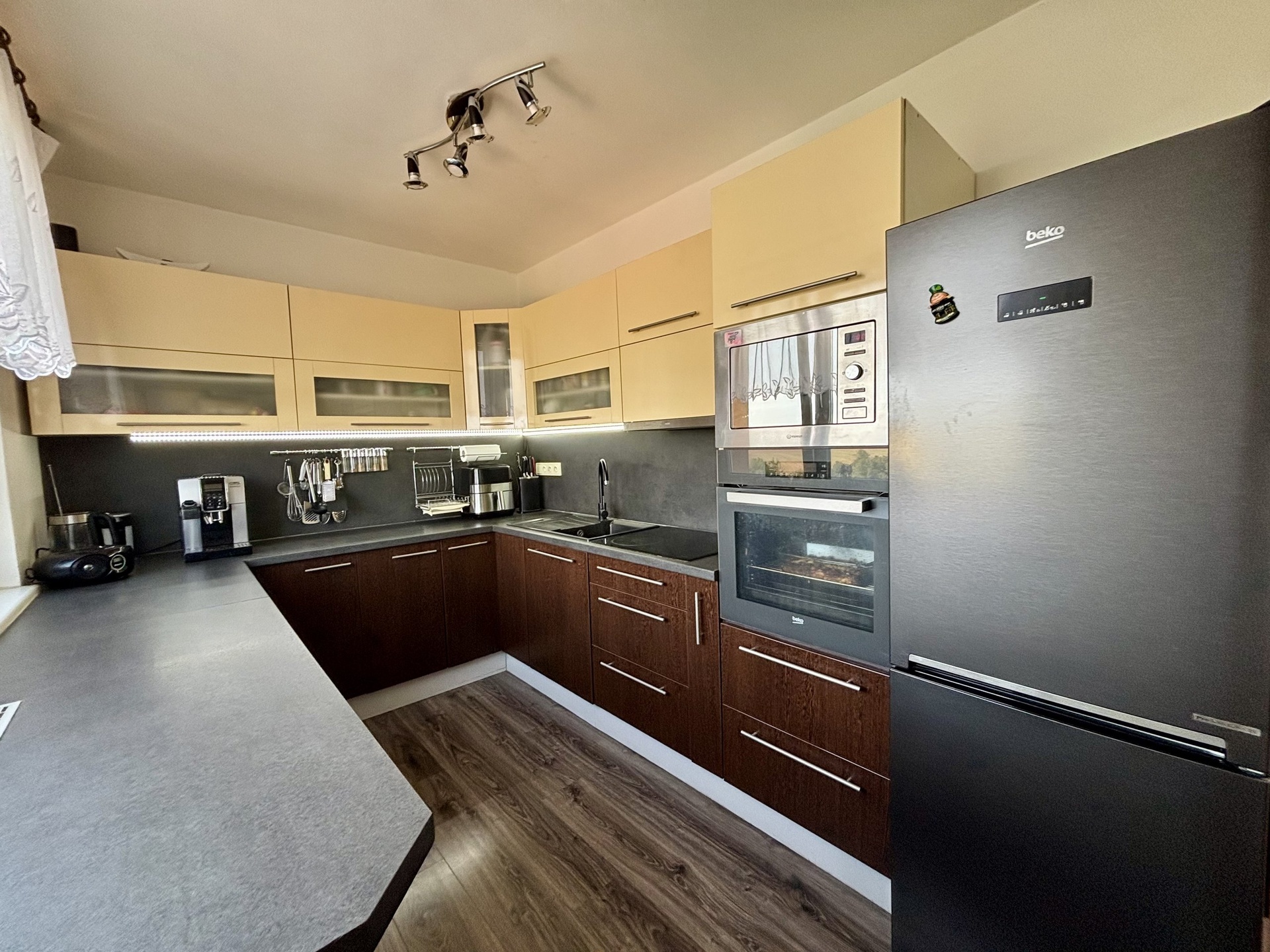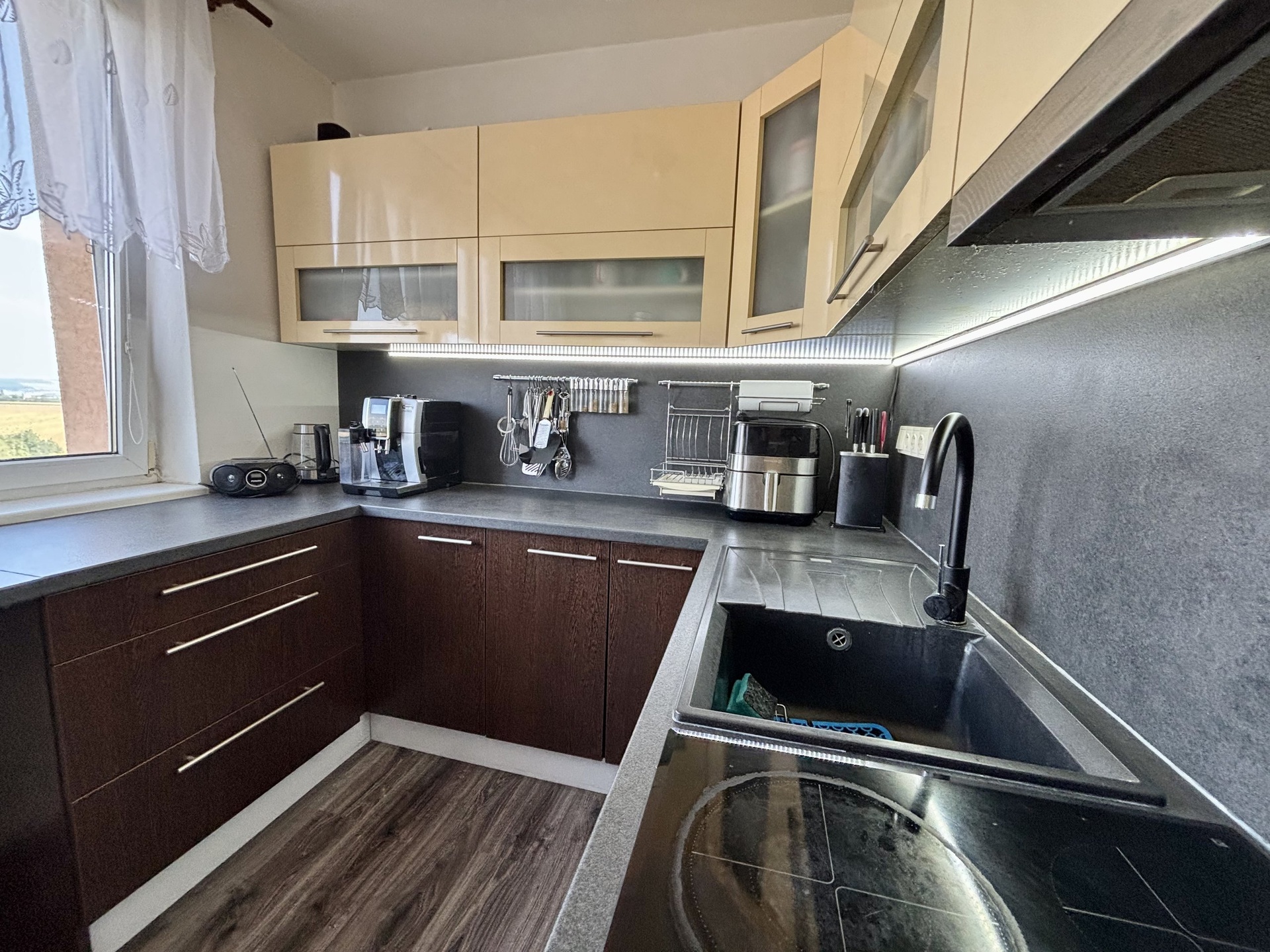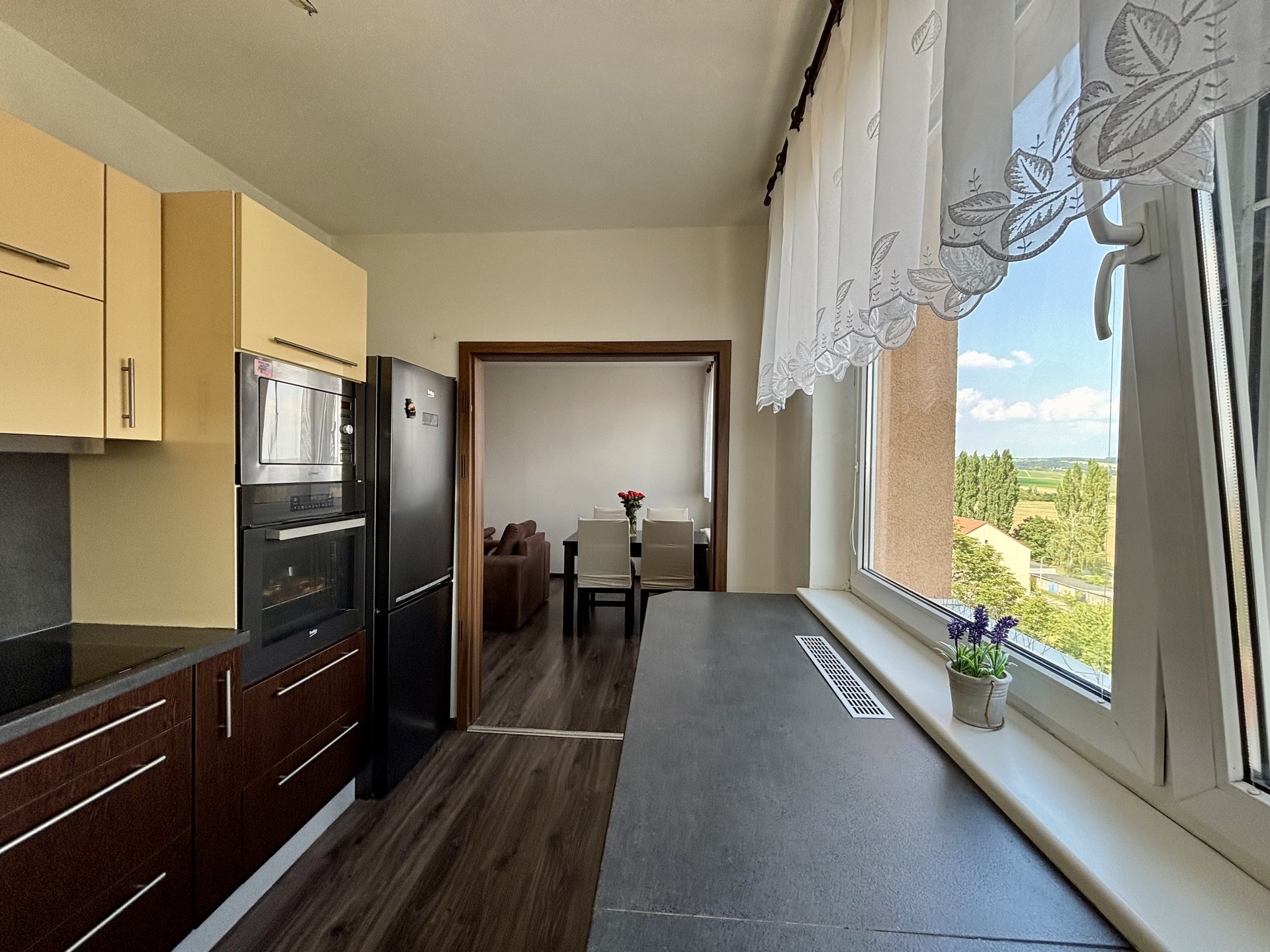 V zastoupení majitele nabízím k prodeji velmi hezký a prostorný byt 3+1 o celkové ploše 78 m² (včetně zasklené lodžie a sklepa), který se nachází v 7. patře panelového domu ve vyhledávané a klidné lokalitě – Sídliště Víta Nejedlého. Byt prošel v roce 2016 kompletní rekonstrukcí – včetně elektroinstalace, zděných příček, podlah (plovoucí), nové koupelny i kuchyně. Kvalitní bezpečnostní vstupní dveře, interiérové dveře značky Solodoor. V bytě je instalovaná klimatizace. Součástí prodeje je vestavěný nábytek v chodbě a ložnici, kuchyňská linka se zabudovanými spotřebiči (mikrovlnná trouba, elektrická trouba, sklokeramická deska). Panelový dům byl zrekonstruován také v roce 2010 – proběhlo zateplení fasády, výměna oken za plastová, nová střecha, nové rozvody odpadu a stupačky v roce 2014. V roce 2018 byl instalován nový výtah. Velmi klidná lokalita s veškerou občanskou vybaveností v docházkové vzdálenosti: 3 minuty chůze k obchodu, zastávce MHD a škole, 50 m od domu se nachází restaurace U Massima, školka, dětské hřiště a ohniště s posezením. Byt je v osobním vlastnictví. K bytu je možné přikoupit zděnou garáž vzdálenou cca 50 m za cenu 780 000 Kč (viz foto). Celkové měsíční náklady (zálohy) jsou aktuálně 9 500 Kč pro 4 dospělé osoby – s pravidelným přeplatkem při ročním vyúčtování. Byt je ve velmi dobrém stavu, k nastěhování od srpna. Zaujala Vás tato nabídka tohoto hezky zrekonstruovaného bytu s neskutečnými výhledy? Pak neváhejte a ihned mě kontaktujte, těším se na prohlídce :-)