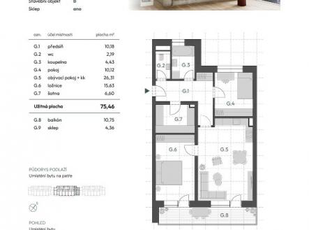 Prodej bytu 3+kk 75 m² s balkonem v novém projektu Rezidence Haná, Vyškov, sklep