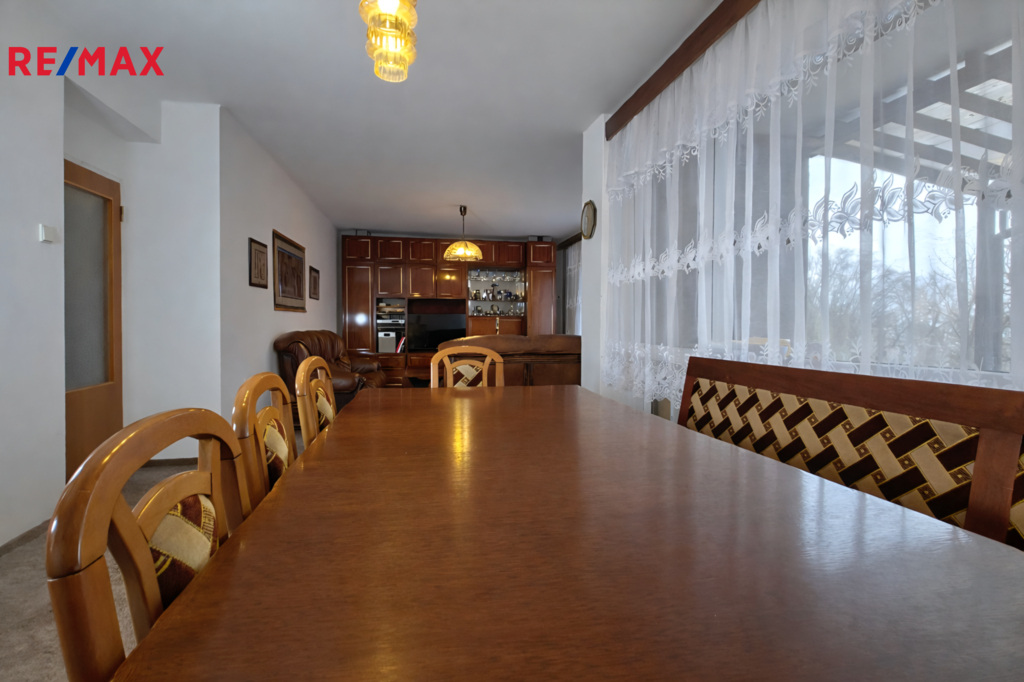 Nabízíme k prodeji samostatně stojící rodinný dům s užitnou plochou cca 180m2 v obci Vysoká. Nemovitost byla kolaudovaná v r. 1980 a je ve velice dobrém technickém stavu. V přízemí domu se nachází prostorný obývací pokoj s jídelnou a vstupem na venkovní terasu, navazuje na prostornou kuchyň, která je vybavená kuchyňskou linkou se spotřebiči. V přízemí se dále nachází toaleta a vstup do sklepa. V patře domu jsou tři samostatné ložnice, jedna se vstupem na balkón. Samozřejmostí je prostorná koupelna s vanou a toaletou. Z chodby v patře je přístup na druhou terasu. K dispozici je i prostorná půda, kterou lze využít buď k uskladnění věcí nebo ke zvětšení obytného prostoru. Dům je celopodsklepený, v suterénu se nachází kotelna, prádelna, dílna, nevyužívaná sauna a další skladové prostory. Nemovitost je napojená na veřejný vodovod, kanalizaci, samozřejmostí je elektřina. Na pozemku o velikosti 827m2 se nachází garáž, vedlejší, částečně podsklepená stavba s chlévem a skladovacím prostorem. Zahrada je udržovaná s okrasným jezírkem, bazénem a skleníkem. Obec Vysoká je klidnou obcí nacházející se na hranici chráněné krajinné oblasti Kokořínsko v dojezdové vzdálenosti 9km na Mělník. Je zde kompletní občanská vybavenost (škola, školka, lékař). Jestli hledáte klidné bydlení v zeleni a s možností aktivního odpočinku je nabídka právě pro Vás.