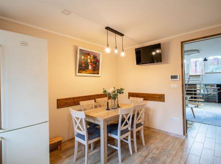 Nabídka rodinných domů na prodej ve Vysokém Mýtě za moc nestojí a proto vám přináším tuto novinku v podobě nadstandardního a lehce atypického kompletně rekonstruovaného domu. Definuje naprostý ideál pro ty, kdo chtějí využívat benefity bydlení v centru města, ale zároveň mít klid. Tato kombinace činí nemovitost jedinečnou. Nacházíme se totiž 3 minuty pěšky od náměstí. Zahrada (vzhledem k vydláždění a absenci travních ploch ji můžeme nazvat i terasou ), směřuje do vnitrobloku a odklopují ji další zahrady, takže ruch města zde téměř nevnímáte. Přímo vedle vchodu se nachází prostorná garáž, do které se kromě vozu vejdou i třeba kola, nebo vám poslouží jako dílna. Další dvě auta zaparkujete před vstupem. Dům nabízí velkorysou obytnou plochu a je vybaven podlahovým vytápěním (pouze oba pokoje v druhém patře disponují radiátory) a klimatizací. Dispozice: Přízemí - garáž, zádveří, chodba s vestavnou skříní. 1. patro - obývák se schody na rozlehlou terasu, kuchyně, koupelna se sprchovým koutem a wc, ložnice, pracovna se vstupem do zimní zahrady, komora s technickým zázemím, zahrada. 2. patro - ložnice, dětský pokoj, koupelna s vanou a wc K dispozici je též velký sklep, do kterého vstupujeme ze zahrady. Interiér působí velmi útulně. Pro lepší představu o uspořádání domu koukněte na video. Pokud v této lokalitě hledáte zajímavou nemovitost, tak se mi ozvěte a pojďme společně na prohlídku.