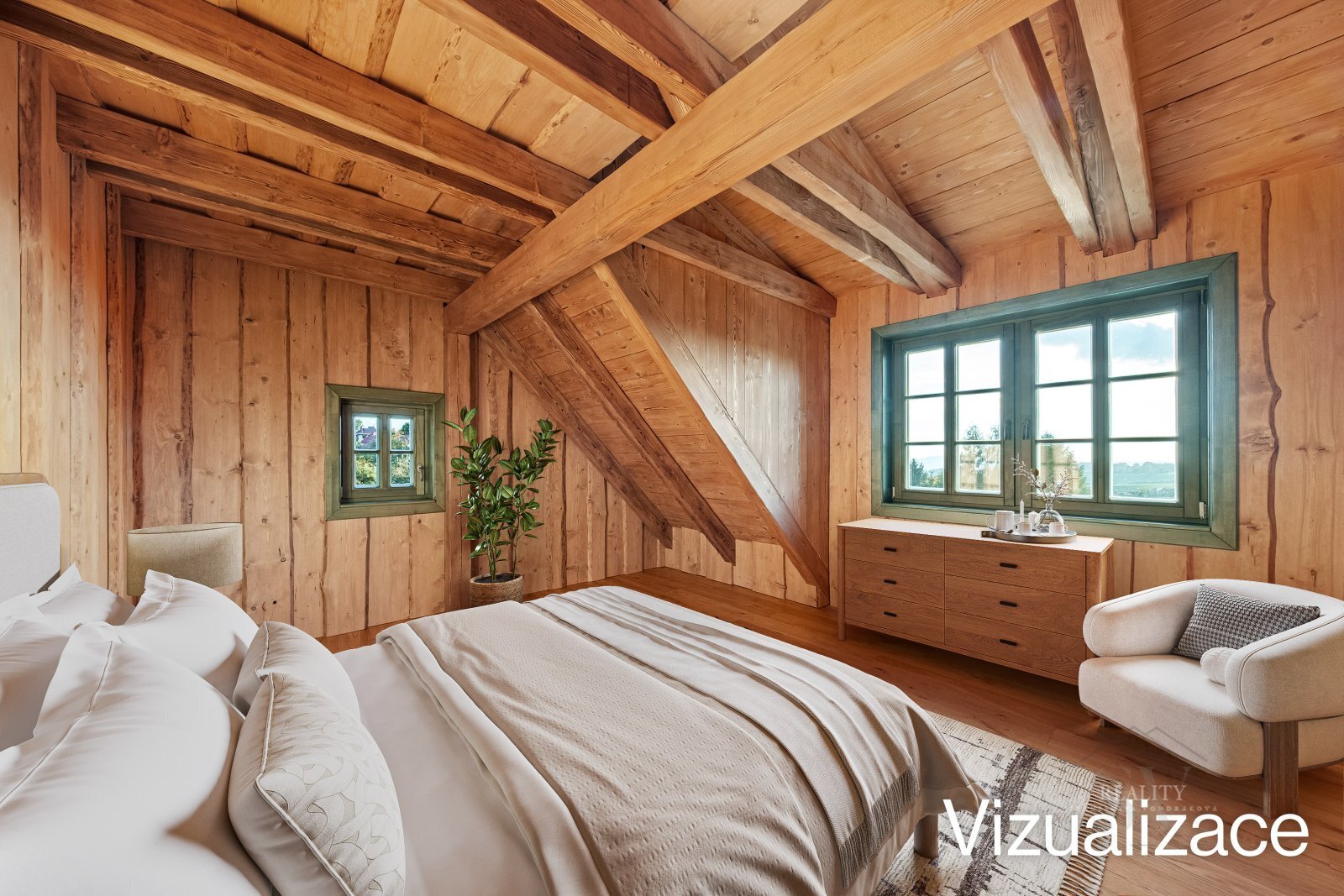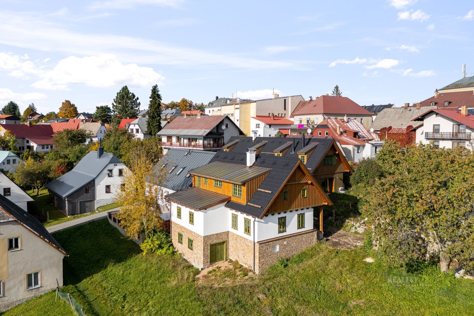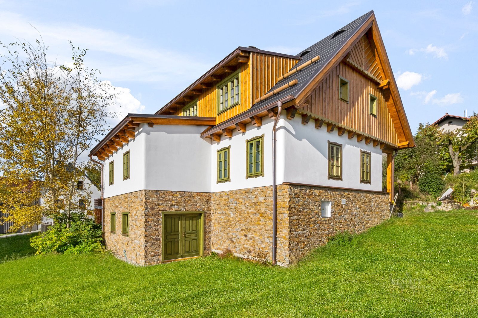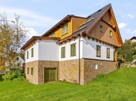 Luxusní horská chalupa 5+kk – Vysoké nad Jizerou Ruční trámové prvky • kachlová kamna s ležením (6 kW) • tepelné čerpadlo NIBE S735-7 s rekuperací • dokončeno Prodáváme jedinečnou horskou chalupu 5+kk po kompletní rekonstrukci, která spojuje autentický krkonošský charakter s prvotřídním zpracováním. Chalupa voní dřevem – veškeré trámy jsou ruční práce, stejně jako kovářské a truhlářské prvky. Doplňky byly vybírány na zakázku v zahraničí: keramické úchytky, designová svítidla a ručně malované kuchyňské obklady tvoří nadčasový, harmonický celek. Dům je kompletně zrealizovaný, dolaďují se už jen jemné detaily. Dispozice & metry Přízemí (88,67 m²): zádveří, technická místnost, koupelna, šatna, spíž, kuchyň s jídelnou a obývací pokoj – dominuje luxusní kachlová kamna s ležením (6 kW). Podkroví (72,88 m²): ložnice + 3 pokoje / pracovna, koupelna, samostatné WC. Suterén (32 m²): praktické zázemí (sport, vinotéka, wellness). Tradiční sedlová střecha, obytné podkroví, podsklepení. Technologie & standard Tepelné čerpadlo NIBE S735-7 s rekuperací → komfort a nízké provozní náklady (vytápění i ohřev vody). LED osvětlení v celém objektu. Napojení na sítě: elektřina, vodovod, plynovod, datová síť CETIN; splašková kanalizace, retenční jímka na dešťovou vodu. Příjezd po stávající obslužné komunikaci (ul. Staroveská). K nahlédnutí: architektonická studie, projektová dokumentace, technická zpráva, PBŘ. Atmosféra & materiály Interiér je promyšlen do posledního detailu – masivní dřevo, ručně malované obklady a precizní kovářská práce tvoří nadčasový celek. Kuchyň na míru a společenská zóna s kamny jsou srdcem domu: krásné na pohled, funkční v každodenním provozu. Lokalita & volný čas Na dosah máte Ski areál Šachty – sjezdovky, večerní lyžování, běžkařské tratě. A po sportu? Restaurace Šachty po rekonstrukci s velkorysými prosklenými výhledy přímo na sjezdovku a poctivou kuchyní z lokálních surovin. Celoročně ideální adresa pro rodinný relax i stylové víkendy. Fotografie, vizualizace & servis „na klíč“ Chalupa je dokončená bez interiérového vybavení. V inzerci najdete aktuální fotografie hotové stavby. Přikládáme vizualizace pro inspiraci možného vybavení a nabízíme kompletní zajištění interiéru „na klíč“ – od návrhu přes výběr materiálů až po dodání a instalaci do posledního detailu (nábytek, svítidla, textilie, doplňky). První setkání rádi zahájíme u dobré kávy v Restauraci Šachty s výhledem na svah – probereme styl, rozpočet i časový plán. Hledáte rekreační domov v Krkonoších, kde se styl, pohodlí a funkčnost potkávají bez kompromisů? Tato chalupa je výjimečná příležitost jak pro soukromé užívání, tak jako investice s dlouhodobou hodnotou. Těšíme se na vás.