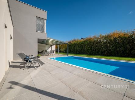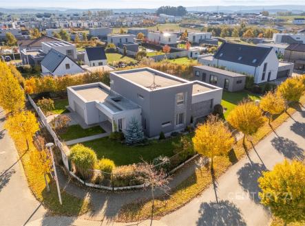 V obci Vysoký Újezd u Berouna, je na prodej nemovitost, která propojuje moderní technologie, promyšlenou architekturu a nadčasový komfort. Tento dům 6+kk s garáží, zahradou a přelivovým slaným bazénem nabízí harmonický životní styl, nikoli jen bydlení. Dispozice domu je promyšlená do posledního detailu – přízemí tvoří soukromé rodičovské křídlo s ložnicí, šatnou a koupelnou, zatímco v patře se nachází tři samostatné dětské pokoje s vlastní koupelnou. Dominantou přízemí je otevřený obytný prostor s kuchyní a přímým vstupem na terasu. Technologie zde pracují pro vás. O komfort se stará systém Loxone, který řídí osvětlení, žaluzie – připravený na rozšíření o plně inteligentní domácnost. Tepelné čerpadlo zajišťuje energetickou úsporu, podlahové vytápění a chlazení, Jablotron chrání dům a je napojený na pult centrální ochrany, kamerový systém Blink sleduje exteriér a optická síť O2 poskytuje vysokorychlostní internetové připojení. Na zahradě najdete přelivový slaný bazén Albixon (8×4 m) s tepelným čerpadlem, plně automatickou filtrací a možností koupání od dubna do října. Automatická závlaha napojená na retenční nádrž zajišťuje vždy dokonale zelený trávník. Součástí prodeje je i samostatný zahradní domek 3+kk (50 m²) – ideální pro hosty, rodiče nebo jako pracovní zázemí. Vysoký Újezd se pyšní výjimečnou občanskou vybaveností – novou školou, školkou, poštou, pizzerií Locale i obchodem. Milovníci gastronomie ocení Château Papillon Resort Hotel & Spa s restaurací Papilio oceněnou 2mi Michelinskými hvězdami, golfisté pak Albatross Golf Resort s restaurací KOGO. Z Prahy jste zde za 20 minut – a přitom v absolutním klidu a soukromí. Tady nekupujete jen dům. Kupujete prostor pro život, který má styl, rytmus a duši.