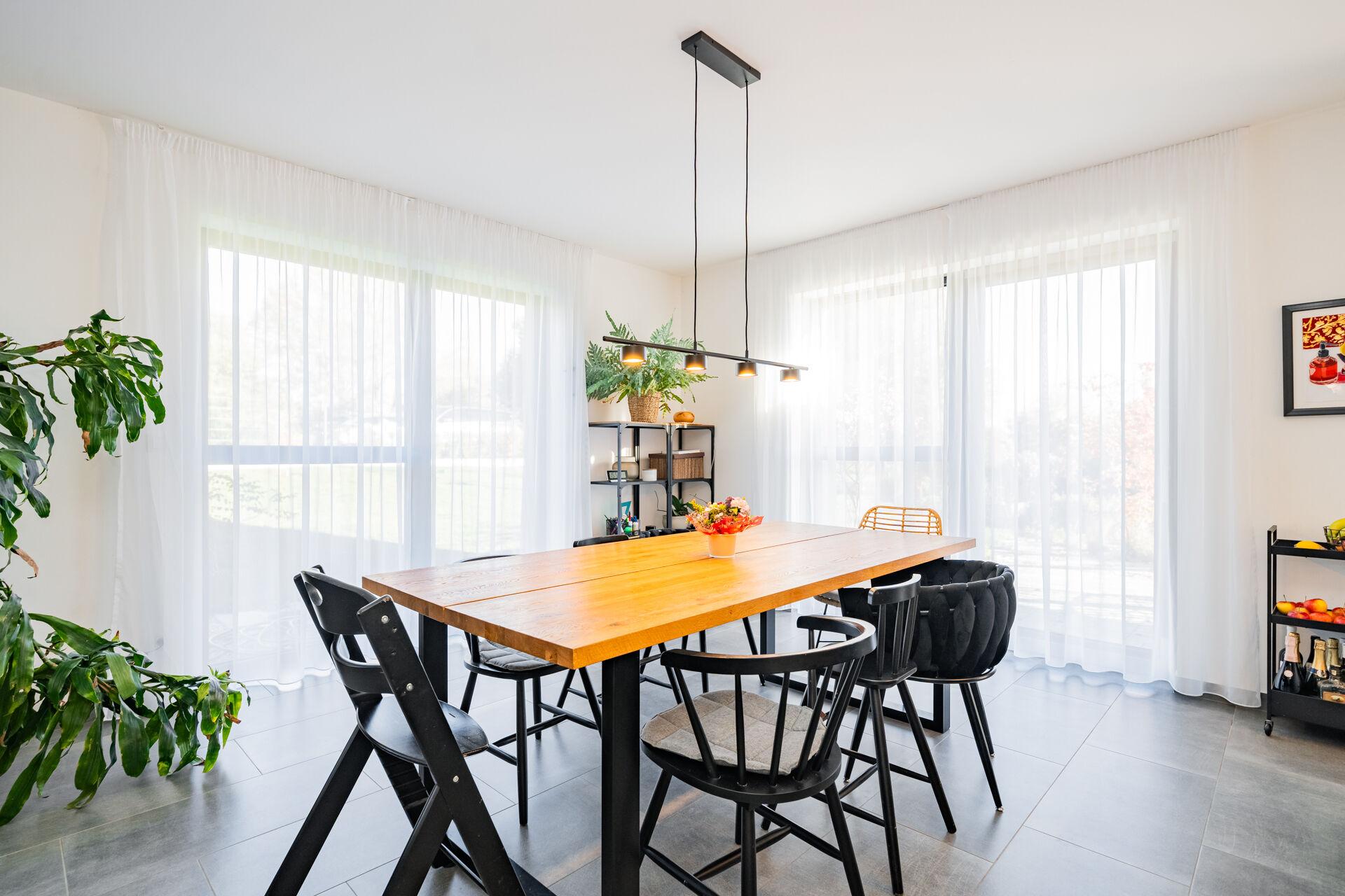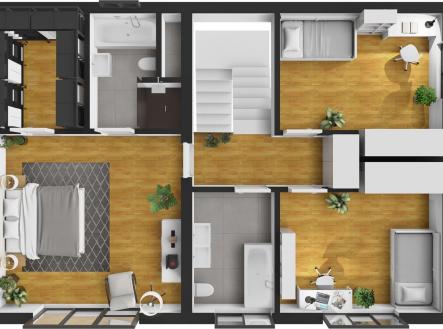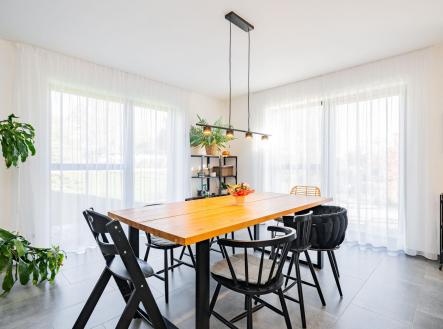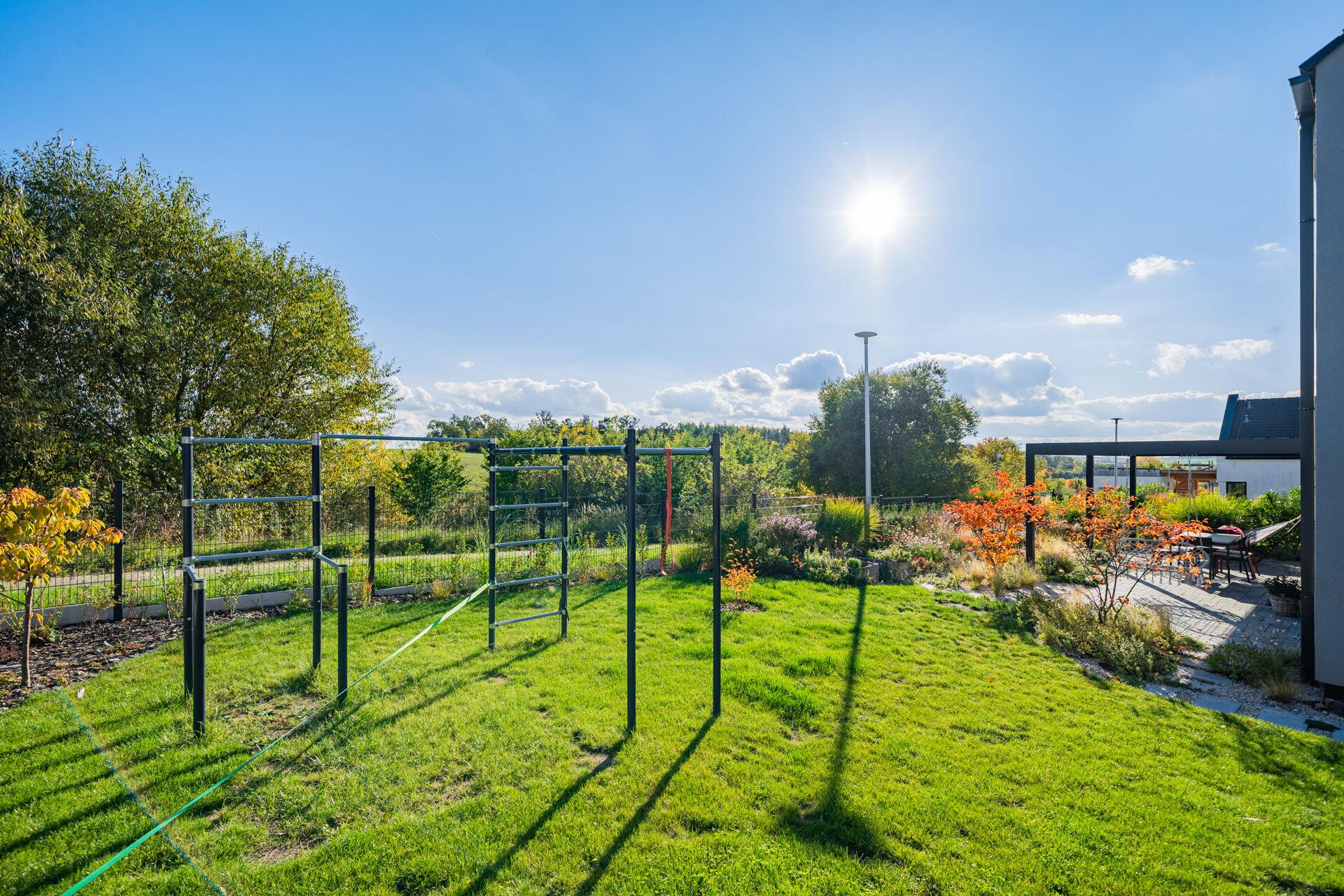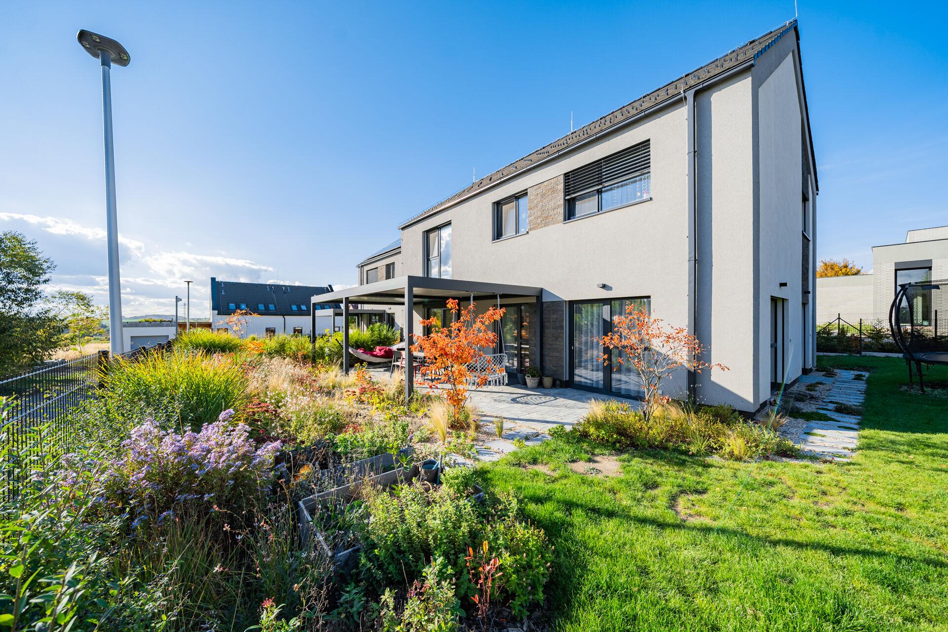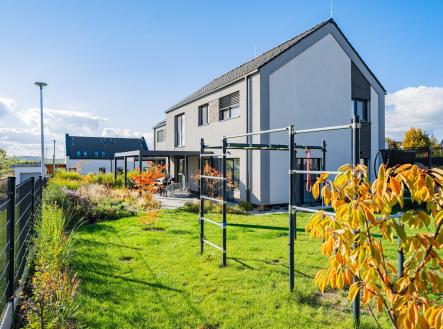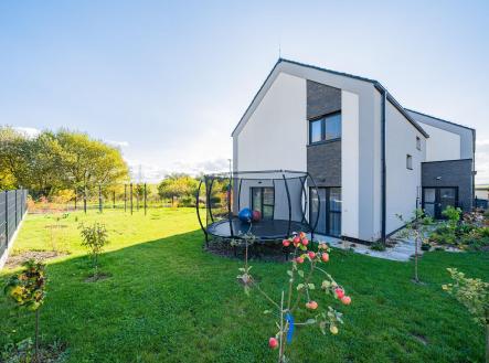 Hledáte pro rodinu bydlení v rodinném domě, které snoubí dostupnost Prahy a klidnou lokalitu pro život? Navíc v atraktivní obci se zázemím a golfovým hřištěm? Právě takovou nemovitost Vám nyní nabízíme ke koupi. Jedná se novostavbu z roku 2022 se skvělými dispozicemi 5kk, 170 m2, s pozemkem 1050 m2, v okrajové části obce Vysoký Újezd. Tato nemovitost je součástí dvojdomu a je součástí developerského projektu Zámecké zahrady v zástavbě nově vzniklých rodinných domů. V přízemí Vás okouzlí velkorysý obytný prostor se vstupem na terasu s pergolou a do dále do zahrady, který moderně propojuje obývací pokoj, jídelnu a kuchyni s pracovním ostrůvkem. Kuchyně je vybavena kvalitní kuchyňskou linkou se spotřebiči. Pečlivě udržovaná zahrada je chloubou této nemovitosti, zatravněná se vzrostlými rostlinami, kde je patrný dotek umu paní majitelky a její excelentní cit pro promyšlenou kompozici a vkusné propojení barev i jednotlivých druhů rostlin. Samozřejmostí je také praktické využití části zahrady jako zázemí pro děti a zastřešená pergola poskytuje reálné zvětšení obytného prostoru, jelikož jste chráněni nejen před sluncem, ale i před deštěm. V přízemí domu se dále nachází samostatný pokoj, sloužící jako pracovna či návštěvní pokoj, vstupní chodba s vestavnými skříněmi, technická místnost a menší koupelna s toaletou. Z hlavního obytného prostoru je vstup schodištěm do prvního patra. Celkově jsou zde tři pokoje. Dva pokoje pro děti se samostatnou koupelnou s toaletou. Pomyslnou třešničkou na dortu je oddělené zázemí hlavní ložnice, která je nejen prostorná a světlá, ale zejména úžasně řešená s šatnou a další koupelnou s toaletou pro zachování maximálního soukromí. Topení je ústřední, 1NP podlahové a 2NP s otopnými tělesy, zajištěno plynovým kotlem, který současně slouží i pro ohřev vody. Je zde obecní vodovod, tlaková kanalizace a datová přípojka optického kabelu od Cetinu. V celém domě jsou předokenní žaluzie. Na pozemku je zajištěno parkování pro dva automobily a je zde zahradní domek o rozloze cca 10 m2 sloužící jako úložný prostor. V případě zájmu mě kontaktujte. Rádi Vám umožníme osobní prohlídku. Pro vážné zájemce máme nachystanou kompletní dokumentaci a všechny potřebné materiály.