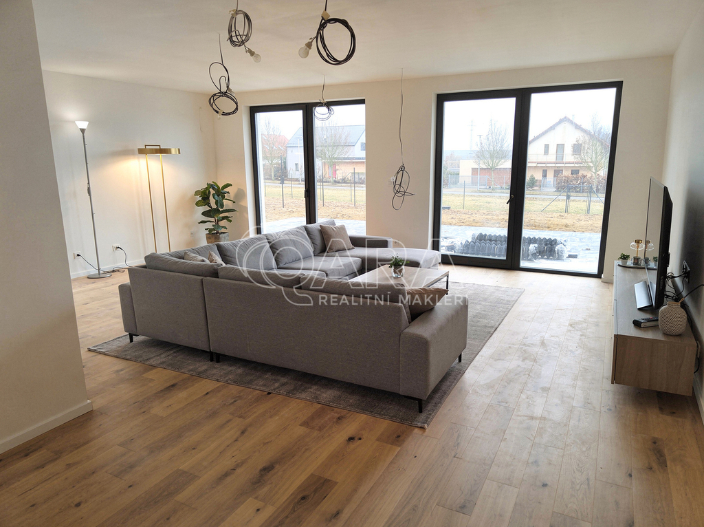 Exkluzivně Vám nabízím nový byt o dispozicí 4+kk s hezkou zahradou v prestižní části obce Vysoký Újezd se skvělou dostupností do Prahy. Byt se nachází v přízemi rodinného domů, kde jsou 3 samostatné bytové jednotky. Kolaudace domů proběhla na konci roku 2025. Celková podlahová plocha bytu je 106 m2 + zahrada 321 m2. Dům je technologicky vyspělou a mimořádně energeticky úspornou stavbou, tepelné čerpadlo, podlahové vytápění a kvalitní dřevena okna s trojskly, příprava na venkovní žaluzie, rozvody bezpečnostního elektronického systému a internetu, což zajišťuje vysoký komfort a minimální provozní náklady. Použito obvodové zdivo s dodatečným zateplením pro skvělou tepelnou izolaci. Dešťová voda je shromažďována v podzemní nádrži a lze ji využít na zavlažování zahrady. Dům je napojen na obecní vodovodní řad, kanalizaci a elektřinu. K bytu patři 2 vyhrazených parkovacích stání na pozemku vedle domu. Vysoký Újezd je exkluzivní rezidenční oblast s kompletní občanskou vybaveností: obchod, restaurace, fitness, golfové hřiště, školy, školky, tenisové kurty a cyklostezky. Díky rychlému spojení do Prahy si můžete užívat komfortní bydlení v klidném prostředí v blízkostí velkoměsta. Oblast je obklopena krásnou přírodou a poskytuje ideální podmínky pro relaxaci i aktivní život, včetně turistických a cyklistických tras. Více informací v RK.