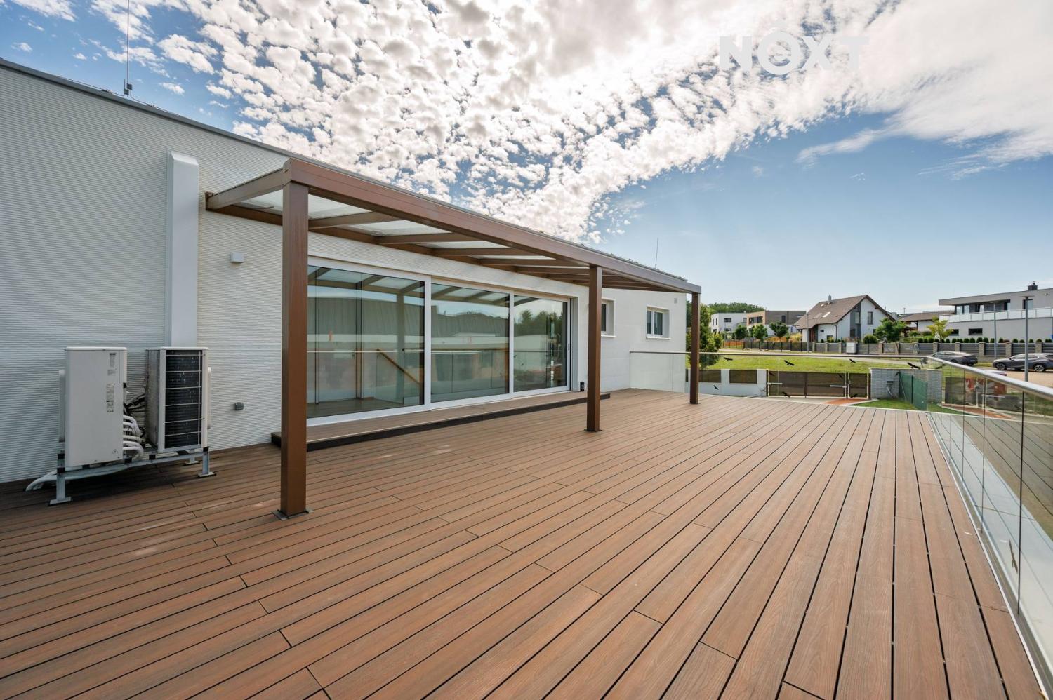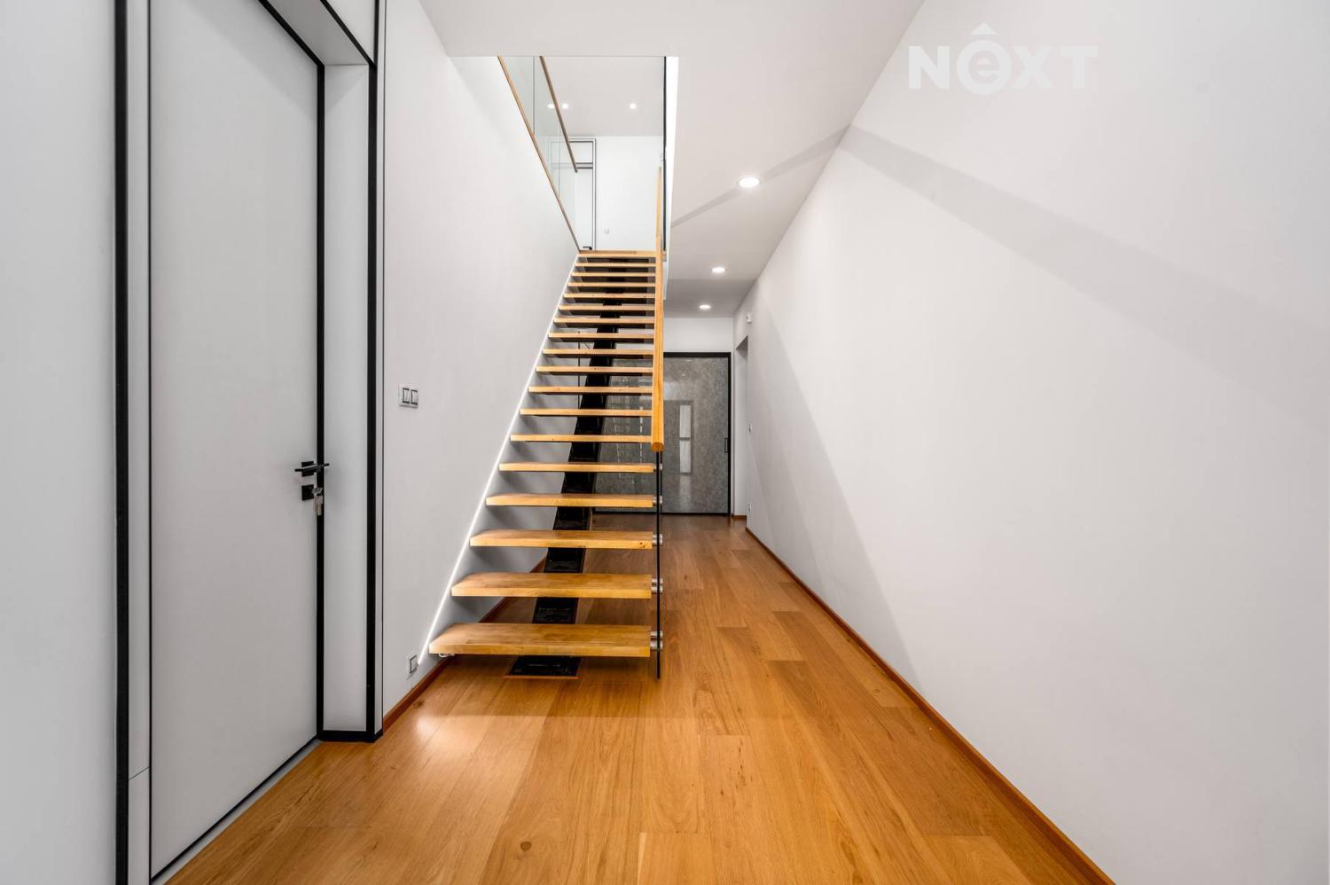 Exkluzivně Vám představuji rodinný dům 5+kk s užitnou plochou 320 m², situovaný na slunném pozemku v prestižní lokalitě Vysoký Újezd. Místo, kde se klid, příroda a moderní architektura přirozeně propojují v prostor, který má duši a který čeká na svůj rodinný příběh. Dům nabízí výjimečnou kvalitu provedení, ale zároveň ponechává prostor pro to nejdůležitější - vtisknout mu vlastní autentičnost. Je připraven stát se domovem, který bude růst s Vámi, Vaší rodinou i Vaší představou o krásném bydlení. Už při vstupu Vás osloví čisté linie, nadčasový design a velkorysé množství denního světla, které vytváří hřejivou atmosféru. Prémiové materiály, ocelová konstrukce, velkoformátová italská dlažba, kanadský dub a moderní technologie zajišťují dlouhodobý komfort a pocit jistoty. Srdcem přízemí je reprezentativní obývací pokoj o výměře 56 m², který je elegantně propojený s jídelnou a designovou kuchyňskou částí. Prostor je navržen tak, aby umožňoval plynulé fungování rodinného života i skvělou reprezentaci. Z obývacího pokoje vede vstup francouzskými dveřmi na terasu a zahradu, které díky orientaci pozemku působí jako soukromá relaxační zóna. Přízemí doplňuje pokoj pro hosty či pracovnu, koupelna, samostatné WC, technická místnost a garáž s přímým vstupem do domu. Designové „plovoucí“ schodiště Vás zavede do patra, kde se nachází hlavní ložnice se samostatným vchodem, koupelnou a šatnou. Dále dva další pokoje a plně vybavená koupelna. Velkorysá sluneční terasa o výměře 70 m² s hliníkovou pergolou nabízí ideální prostor pro relaxaci. Vysoký Újezd je vyhledávanou lokalitou pro ty, kdo touží po bezpečném, klidném a prestižním prostředí. Okolní příroda, Golf Resort Beroun a bohaté možnosti volnočasových aktivit vytvářejí životní styl, který v sobě spojuje eleganci, rovnováhu a radost z každodennosti. Tento rodinný dům je připraven stát se domovem, který ponese Váš otisk - elegantní, útulný a jedinečně Váš. S potěšením Vás domem osobně provedu. Pro komunikaci uvádějte evidenční číslo zakázky N115370.