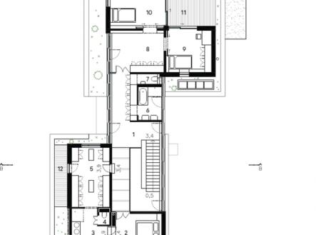Výjimečná novostavba ve Vysokém Újezdu – moderní architektura, příroda a dvougenerační komfort Nabízíme prodej exkluzivní hrubé stavby rodinného domu ve vyhledávané lokalitě Vysoký Újezd u Berouna, ulice U Remízku. Dům navržený renomovaným ateliérem læb spojuje moderní architekturu s důrazem na ekologii, funkčnost a soukromí. Dvougenerační řešení s užitnou plochou 378 m² – dvě samostatné jednotky propojené vstupní halou s technickým zázemím Přízemí: samostatný 2+kk byt s vlastní terasou – ideální pro rodiče, hosty či investici Hlavní jednotka: otevřený obytný prostor s výhledem do krajiny, kuchyň, jídelna, pokoj pro hosty, vstup na jižní terasu s bazénem Patro: ložnice s šatnou a koupelnou s výhledem do přírody, dva dětské pokoje s terasou, galerie s knihovnou a prostorem pro umění Technologie a standardy: • Tepelné čerpadlo země–voda • Rekuperace s rozvody ve stěnách • Fotovoltaika a solární ohřev • Intenzivní zelené střechy • Centrální vysavač • Kvalitní přírodní materiály – beton, dřevo, omítka • Retenční nádrž s jezírkem pro zavlažování Zahrada: Součástí prodeje je i profesionálně zpracovaná studie zahrady na ploše 760 m². Navržené zóny zahrnují venkovní kuchyň s vířivkou, ohniště, prostor pro pěstování, skleník, relaxační zákoutí i herní prvky. Celý koncept respektuje okolní krajinu a zajišťuje soukromí i maximální užitnost. Lokalita: Vysoký Újezd je dynamicky se rozvíjející obec s výbornou dostupností do Prahy. V okolí se nachází prestižní golfový resort Albatross, hrad Karlštejn, přírodní park Český kras a mnoho cyklostezek i turistických tras. Dopravní spojení zajišťuje autobus i vlak – autem jste v Praze do 25 minut. Kombinace přírody a městského komfortu dělá z této lokality ideální místo pro rodinné bydlení. Dokončení na míru: Dům je aktuálně ve fázi hrubé stavby. Nabízíme možnost dokončení dle přání klienta ve spolupráci s architektem, stavební firmou, stavebním dozorem a také designérkou interiéru. K dispozici je kompletní projektová dokumentace včetně detailní studie zahrady.