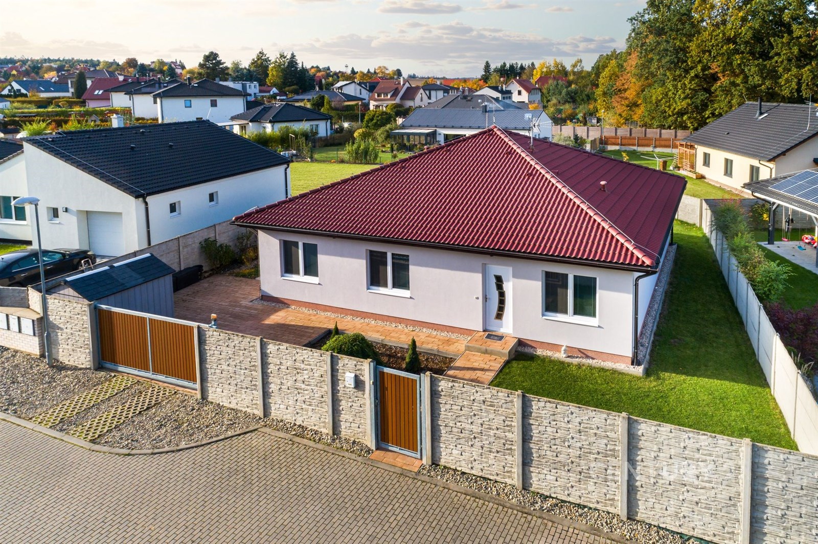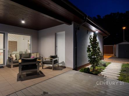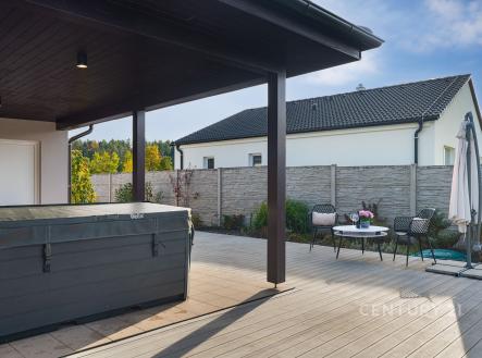 Na klidném místě obklopeném přírodou stojí dům, který vznikl bez kompromisů. Postavený v roce 2018 renomovanou firmou HP Domy jako dřevostavba, která krásně drží teplo a působí stále jako nový . Nabízí 136 m² obytné plochy, promyšlenou dispozici 5+kk a pozemek 786 m². Uvnitř domu vás přivítá světlý a vzdušný interiér, kde má všechno své místo. Každý z pokojů má vestavěnou skříň, v obývací části nechybí vestavná stěna a důmyslně řešený úložný prostor. O komfort se stará řízené větrání s rekuperací, podlahové vytápění a zabezpečovací systém. Kuchyň byla vyrobena na míru studiem Sykora, vybavena spotřebiči v kombinaci Miele a Electrolux, která je dokonale sladěna s obývacím prostorem. Na terasu se vychází přímo z obýváku i ložnice – část je zastřešená a je v kombinaci dřevoplast a dlažba, ideální pro posezení za každého počasí. A navíc: celoroční vířivka Wellis pro 6 osob luxusní místo pro relaxaci po náročném dni. Dům má prostornou koupelnu, samostatné WC, technickou místnost, dvě parkovací stání před domem a jedno na pozemku, prostorný sklad na cokoliv i zahradní domek na zahradní nářadí. Zahrada je soukromá, udržovaná, rovinná s prostorem i na bazén. Vyžlovka je místo, kde se žije v rytmu přírody. Les začíná hned za domem, na dosah jsou Voděradské bučiny, cyklostezky, ráj pro běžkaře, i vyhlášené Vyžlovské koupaliště. V létě se tu chodí na jahody, maliny nebo houby, v zimě se bruslí na zamrzlých rybnících. V obci je obchod, škola, hřiště, posilovna a oblíbená Pizzerie Vyžlovka. Do Prahy je to přibližně 30 minut, do Říčan pár minut autem (11 km) a přímý autobus vás doveze až na Háje. Dům, který má promyšlený každý detail. Místo, kde se dá dýchat, žít a odpočívat. Vyžlovka – domov, který stojí za to vidět.