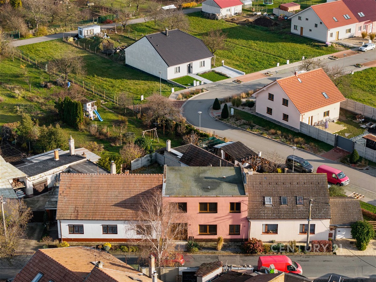 Nabízíme k prodeji prostorný rodinný dům v oblíbené obci Žabčice, který zaujme svou praktickou dispozicí, velkorysým pozemkem i výbornou dostupností do Brna. Celková plocha domu činí 200,22 m², z toho užitná plocha 171,10 m². Součástí je také průjezd o velikosti 29,12 m², který nabízí praktické využití a pohodlné propojení se zahradou. Dům má velmi dobře řešené uspořádání. Přízemí o velikosti 69,16 m² tvoří světlá kuchyně propojená s obývacím pokojem, koupelna, samostatné WC a předsíň. V horním patře s plochou 101,94 m² se nacházejí čtyři samostatné ložnice a druhá koupelna s WC, což je ideální řešení pro rodinu, která potřebuje dostatek soukromí. K příjemnému posezení poslouží také zimní zahrada umístěná v blízkosti průjezdu. K domu náleží pozemek o celkové výměře 1 216 m², z toho 133 m² tvoří dvůr a 1 083 m² udržovaná zahrada ideální k zahradničení s dostatkem prostoru i k odpočinku. Na zahradě se nachází kůlna na nářadí a další úložný prostor, vhodný pro zahrádkáře či kutily. Dům je napojen na studnu, jejíž voda je rozvedena do celého objektu. K dispozici je také obecní voda přivedená do domu. Střešní krytinu tvoří asfaltová lepenková izolace. Okna i vchodové dveře prošly výměnou. Lokalita je jedním z hlavních benefitů této nemovitosti. Žabčice leží přibližně 20 minut od Brna a patří mezi vyhledávané obce díky klidné atmosféře, kompletní občanské vybavenosti a skvělému dopravnímu spojení. V obci se nachází škola, školka, obchod, restaurace, zdravotní středisko i vlakové nádraží s přímými spoji do Brna. Oceníte také krásné okolí ideální pro procházky, sport i rodinné výlety. Pokud hledáte prostorný dům s velkou zahradou, dobře řešenou dispozicí a skvělou dostupností do města, tato nemovitost v Žabčicích může být tou pravou volbou.