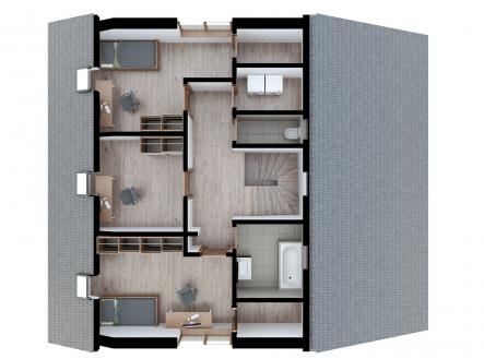 Rodinný dvoupodlažní dům "ACHÁT" o rozloze 161,2 m² je ideální volbou pro ty, co hledají prostorné a pohodlné bydlení. Hlavní dominantou tohoto domu je prostorný obývací pokoj poskytující dostatek místa pro rodinné aktivity a společenské události. Dům dále disponuje praktickou garáží, která zajišťuje bezpečné parkování a úložný prostor. Ve spodním patře najdete pokoj, jenž je díky svému umístění ideální jako pokoj pro hosty nebo domácí kancelář. Horní patro nabízí dva pokoje s vlastní šatnou, což zvyšuje komfort a poskytuje dostatek úložného prostoru. Kromě toho je zde ještě jeden pokoj bez šatny, využitelný například jako dětský pokoj nebo pracovnu. Projekt RD Panský představuje výstavbu minimálně 22 hrubých staveb rodinných domů v malebné obci Zaječice, nedaleko Chrudimi. Tento ambiciózní stavební projekt kombinuje moderní architekturu s kvalitou a spolehlivostí, kterou přináší materiál značky Velox. Nabízíme Vám ideální příležitost pro ty, kteří hledají nové bydlení v klidném a přívětivém prostředí v blízkosti přírody. Jednou z hlavních výhod projektu RD Panský je, že se jedná o prodej hrubých staveb. To znamená, že máte jedinečnou příležitost dokončit svůj domov přesně podle svých vlastních představ a potřeb. Tento přístup vám umožní přizpůsobit interiér tak, aby plně odpovídal vašemu vkusu a životnímu stylu, a vytvořit tak bydlení, které bude skutečně vaším vysněným domovem. Zaječice jsou malebná obec s dlouhou historií, vzdálená pouhých 10 kilometrů od Chrudimi. Naleznete zde sportovní i kulturní vyžití pro všechny členy rodiny. Obec nabízí skvělou vybavenost: školu, hřiště, vlakové i autobusové spoje, zdravotní středisko s obvodním lékařem a stomatologií, obchod se základními potřebami a poštu, která zajišťuje klíčové služby. Tím je zajištěn pohodlný život pro všechny obyvatele. Pokud rádi travíte čas v přírodě, ať už na kole nebo na dlouhých procházkách, tak se zamilujete do Železných hor. Skvělá dostupnost do Chrudimi i Pardubic. Veškeré další informace a detaily spolu pojďmě probrat osobně, tak neváhejte volat.
