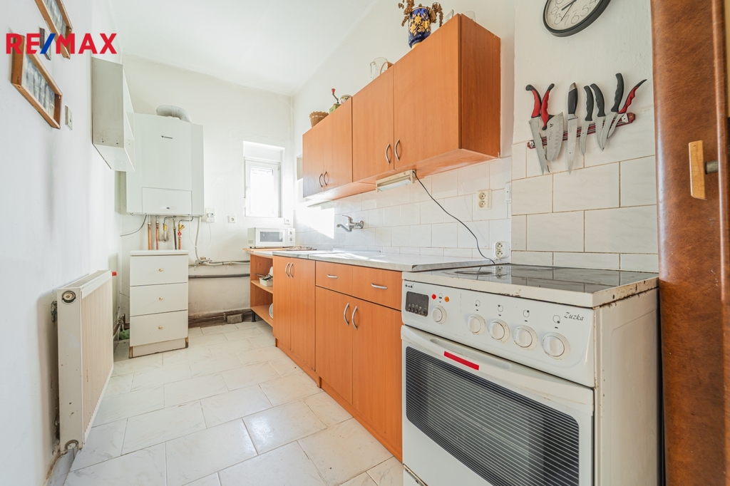 Nabízíme Vám ke koupi rodinný dům 3+1 s garáží (143 m2), dílnou, půdou a skladovacími prostory na pozemku o výměře 1828 m2 na klidném okraji obce Zákolany, okr. Kladno. Jedná se o zděnou přízemní stavbu (smíšené zdivo) s půdou vhodnou k vestavbě (nástavbě). Na pozemku je dále samostatně stojící garáž s dílnou, kryté garážové stání podél domu, objekt bývalé kotelny a několik skladovacích prostor zabudovaných do opěrné zdi, to vše v rámci uzavřeného dvora. Nemovitost byla do poslední chvíle obývána. Je v udržovaném stavu a je nadále vytápěna plynovým kombinovaným kotlem. Vstupní dveře a okna jsou plastová. Celkový stav však vyžaduje další rekonstrukci. Dispozičně je dům členěn na 3+1 s koupelnou, vstupní verandou a spíží. V obývacím pokoji je otevřený krb. IS: dům je napojen na obecní vodovod, plyn (vytápění a ohřev TUV), odpady svedeny do jímky. Pozemek o celkové výměře 1828 m2 je terasovitý, z části zasazen do volné přírody (skalní útvary, zeleň) a nachází se na konci obce, mimo hlavní silnici. Výměry: - dům (3+1) 89 m² - půda 84 m² - sklad. prostory 26 m2 - garáž s dílnou 55 m² - garážové stání 35 m² Spojení MHD: - autobusová zastávka linky 323 je 100 m od domu. Konečná zastávka Praha - Nádraží Veleslavín ke stanici metra A - 40 minut - vlaková stanice Zákolany 800 m od domu. Vlakem dojedete například do stanice Slaný, Hostivice, nebo Praha Smíchov, Praha hlavní nádraží. Občanská vybavenost v obci: - obecní úřad - mateřská a základní škola - pošta - obchod COOP - Z-BOX Koupi nemovitosti lze financovat hypotečním úvěrem, který Vám v případě zájmu zajistíme na míru. Pro další informace a sjednání termínu prohlídky volejte.