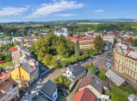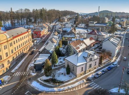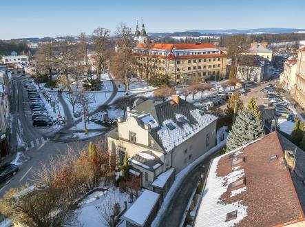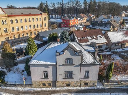 K prodeji prvorepubliková vila z roku 1912 v obci Žamberk, stojící poblíž náměstí, na nároží ulic Nádražní a 28. října. Po rekonstrukci vila nabídne ideální místo pro bydlení i podnikání. Hlavní vstup je orientován do ulice Nádražní, přístup je řešen také z ulice U Divadla. Stavba nabízí zajímavé dispoziční uspořádání, jedno nadzemní podlaží a částečně využité podkroví. Dům je celopodsklepený, disponuje zastavěnou plochou 175 m2 a velkorysou užitnou plochou 320 m2. Vilu obklopuje zahrada o výměře 380 m2. Interiéru dominuje vzdušná vstupní hala s širokým schodištěm. V přízemí najdeme 4 prostorné pokoje a příslušenství v podobě komory a toalety. Rovněž z přízemí je vstup do jedné zahrady. V podkroví se nachází 2 pokoje, kuchyňský kout, koupelna s toaletou a další půdní prostory vhodné k vestavbě. Dům je napojen na veřejný vodovod, kanalizaci a elektřinu. Centrální vytápění domu zajišťoval kotel na tuhá paliva a krbová kamna. Parkování je k dispozici na obecních plochách u domu. Poblíž je pošta, městský úřad, školy, autobusové nádraží, obchody a veškeré služby. Doporučuji prohlídku vzhledem k lokalitě a ojedinělé nabídce podobného charakteru.