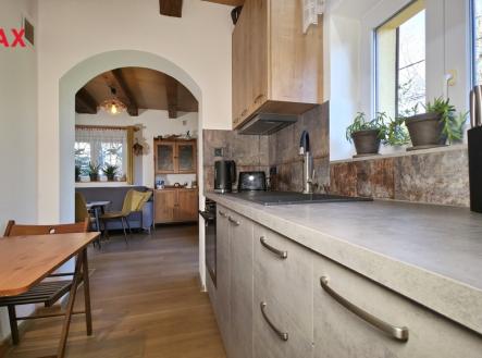 Nabízíme k prodeji zděnou, celoročně obyvatelnou chalupu v nádherné lokalitě chráněné přírodní památky Bobří soutěska s Bobřím potokem. Jedná se o obec Velká Javorská, která je obklopena krásnou přírodou. Zděná chalupa byla kolaudovaná v roce 2004 a má zastavěnou plochu 57m2, užitnou cca 60m2. Dispozice je tvořená vstupní verandou, chodbou, ze které je vstup do spíže, technické místnosti, samostatné toalety a koupelny. Ta je se sprchovým koutem a přípojkou na pračku. Dále se zde nachází vstup do hlavního obytného prostoru chalupy, který je tvořen kuchyní s kuchyňkou linkou se spotřebiči, nachází se zde i menší, na míru dělaný skládací jídelní stůl. Kuchyň, koupelna a podlahy v přízemí jsou nově zrekonstruované. Na kuchyň navazuje obývací pokoj, ten je s krbem a francouzským oknem, ze kterého je vstup na slunnou venkovní terasu. Obytné podkroví je přístupné po dřevěném schodišti a nacházejí se zde dvě samostatné ložnice. Vytápění je zajištěné krbem v kombinaci s elektrickými přímotopy, odpad je svedený do jímky a voda je čerpaná z vlastní studny. Velice udržovaný pozemek kolem domu má celkovou plochu 1042m2 a je koncipován jako okrasná, odpočinková zahrada. Absolutní soukromí zajišťuje vzrostlá a udržovaná zeleň. Na pozemku se nachází dřevěné stavby, které slouží ke skladování věcí, krytá pergola, venkovní krb a studna. Jedná se o velice pěknou chalupu ve výborném technickém stavu, která umožňuje celoroční obývání, je vhodná jak k rekreaci, tak i trvalému bydlení. Dojezdová vzdálenost do České Lípy je 15km.