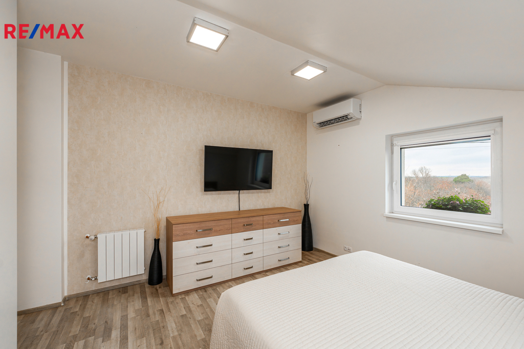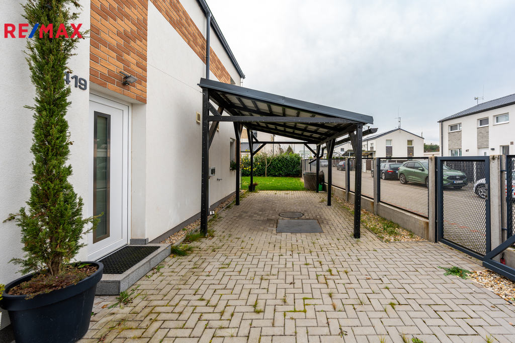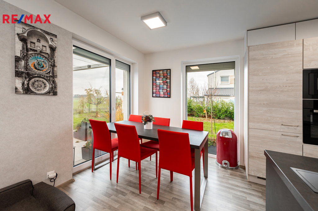 Dovoluji si Vám nabídnout moderní rodinný dům z roku 2016/2017, který splňuje vysoké nároky na energetickou úspornost, kvalitní provedení a klidné rodinné bydlení v oblíbené lokalitě Záryby–Martinov. Nemovitost byla postavena v pasivním režimu se státní dotací Zelená úsporám (vázanost dotace na 10 let) a disponuje průkazem PENB v třídě A podle tehdejší legislativy. Dům o dispozici 5+kk a výměře 123 m² stojí na pozemku 530 m² a nabízí velmi promyšlenou konstrukci: sedlovou plechovou střechu, cihlové zdivo Heluz 25 a kvalitní zateplení 20 cm polystyrenu. Plastová okna s trojskly jsou doplněna ochrannými sítěmi, v horním patře vnitřními žaluziemi, v celém přízemí a ve dvou ložnicích v horním patře navíc elektricky ovládanými roletami. V interiéru se střídají dlažby a laminátové podlahy. Energetické řešení domu je jedním z jeho největších benefitů. Veškeré vyrobené teplo je akumulováno do bojleru o objemu 123 litrů. O vytápění se stará kombinace radiátorů, klimatizace, peletových kamen s napojením na bojler a samozřejmě také rekuperace vzduchu. Klimatizace byla instalována v roce 2023. Celý systém doplňuje moderní fotovoltaika z roku 2024 — 16 solárních panelů o celkovém výkonu 8kWh , baterie 11,6 kWh a wallbox 11kWh, vše od značky Solax. Díky tomu činily celkové roční provozní náklady za minulý rok pouhých 22 000 Kč, a to včetně dobíjení auta. Náklady na vodu jsou přibližně 500 Kč na dospělou osobu. Dům je napojen na obecní vodu, elektřinu a tlakovou kanalizaci. Internet je řešen bezdrátově, plyn v lokalitě není. Parkování je komfortní — na vlastním pozemku lze zaparkovat 4 až 5 vozidel, další místa jsou k dispozici před domem. Orientace domu na východ, jih a západ zajišťuje dostatek světla po celý den. Součástí zahrady je také praktický zahradní domek, terasa, pergola a přístřešek na auta vč. dalšího úložného prostoru. Z interiéru zůstává plně vybavená kuchyňská linka a vestavěné skříně. Velkou přidanou hodnotou jsou také velmi dobré sousedské vztahy v celé ulici — funguje zde aktivní sousedská skupina. Pokud hledáte úsporný útulný dům s velmi nízkými provozními náklady a příjemnou komunitou, toto je nabídka, kterou rozhodně doporučuji vidět osobně. Prohlídky se budou konat po předchozí telefonické či e-mailové dohodě. Dovolujeme si upozornit, že v případě více vážných zájemců může být nemovitost prodána nejlepší nabídce.