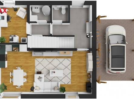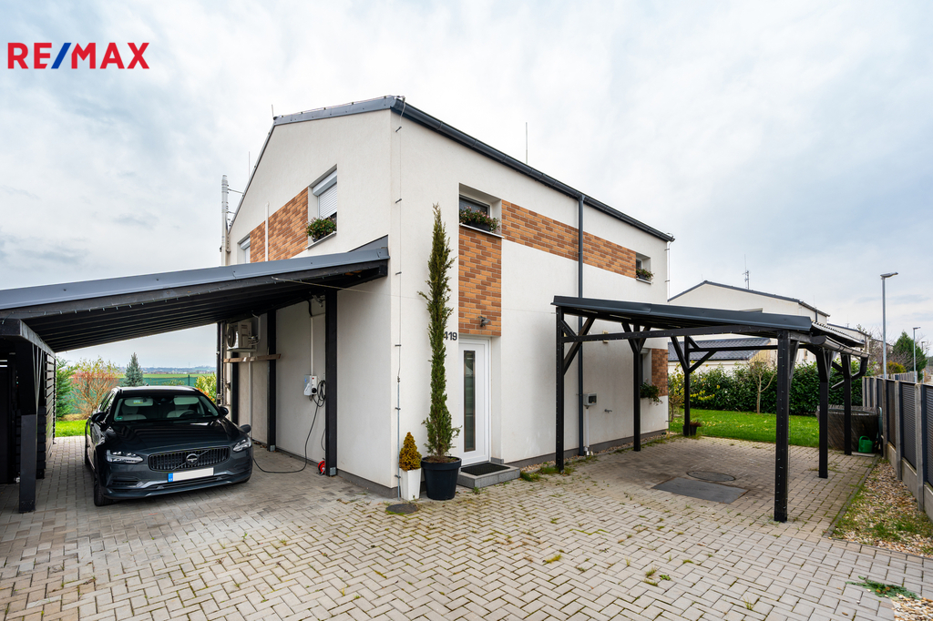 Moderní pasivní dům 5+kk s FVE 8kWh, baterií 11,6 kWh, wallboxem a parkováním až pro 5 aut.