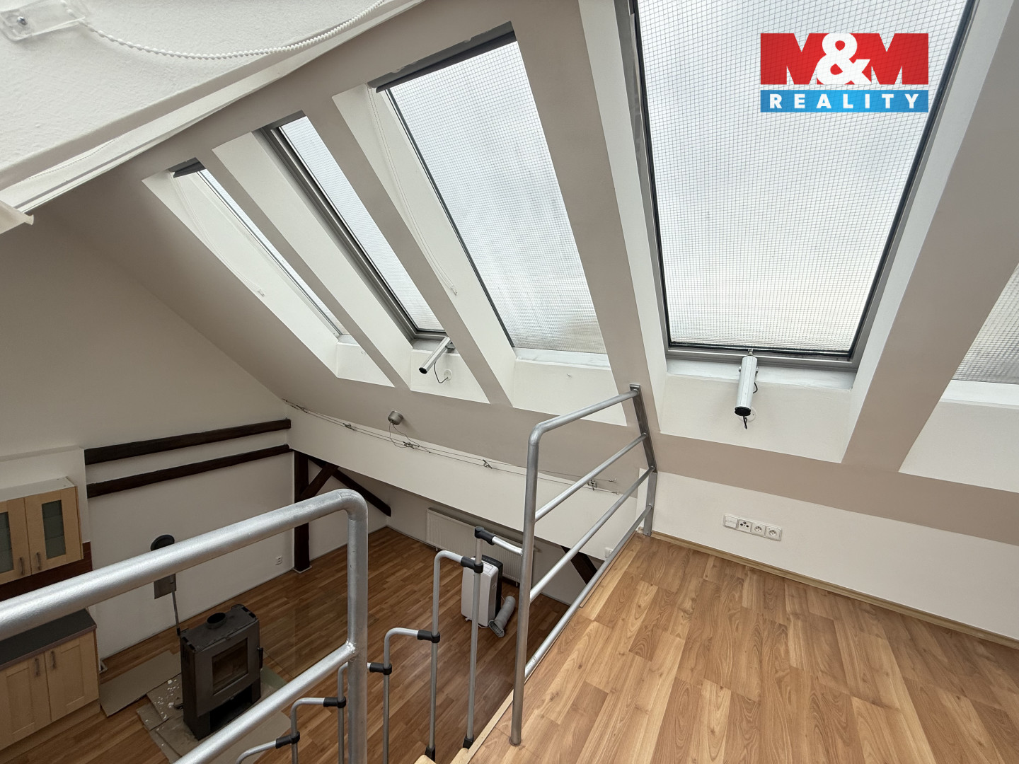 Nabízíme k pronájmu atypický mezonetový byt 1+1 v samotném centru města Žatec. Byt se nachází ve 2. a zároveň posledním podlaží domu a zaujme především svým neobvyklým řešením a velkorysým prostorem. Celková užitná plocha činí cca 100 m². Dispozice bytu zahrnuje vstupní chodbu, koupelnu s WC a prostorný obývací pokoj s kuchyňským koutem. V horním patře se nachází samostatná ložnice, která poskytuje dostatek soukromí. K bytu je možné užívat dvůr u domu, vhodný k odpočinku. Vytápění je řešeno plynovým kotlem, případně krbem, který dodává bytu příjemnou atmosféru. Uvedená cena nájmu je bez poplatků, kauce činí 30 000 Kč. Byt bude pronajat pouze pracujícím osobám bez domácích mazlíčků.
