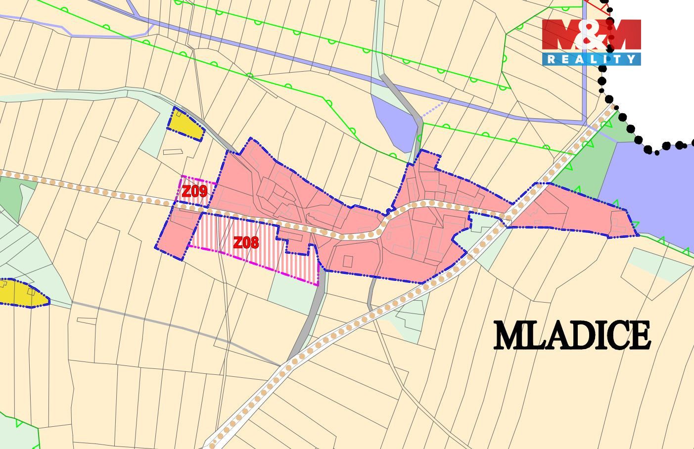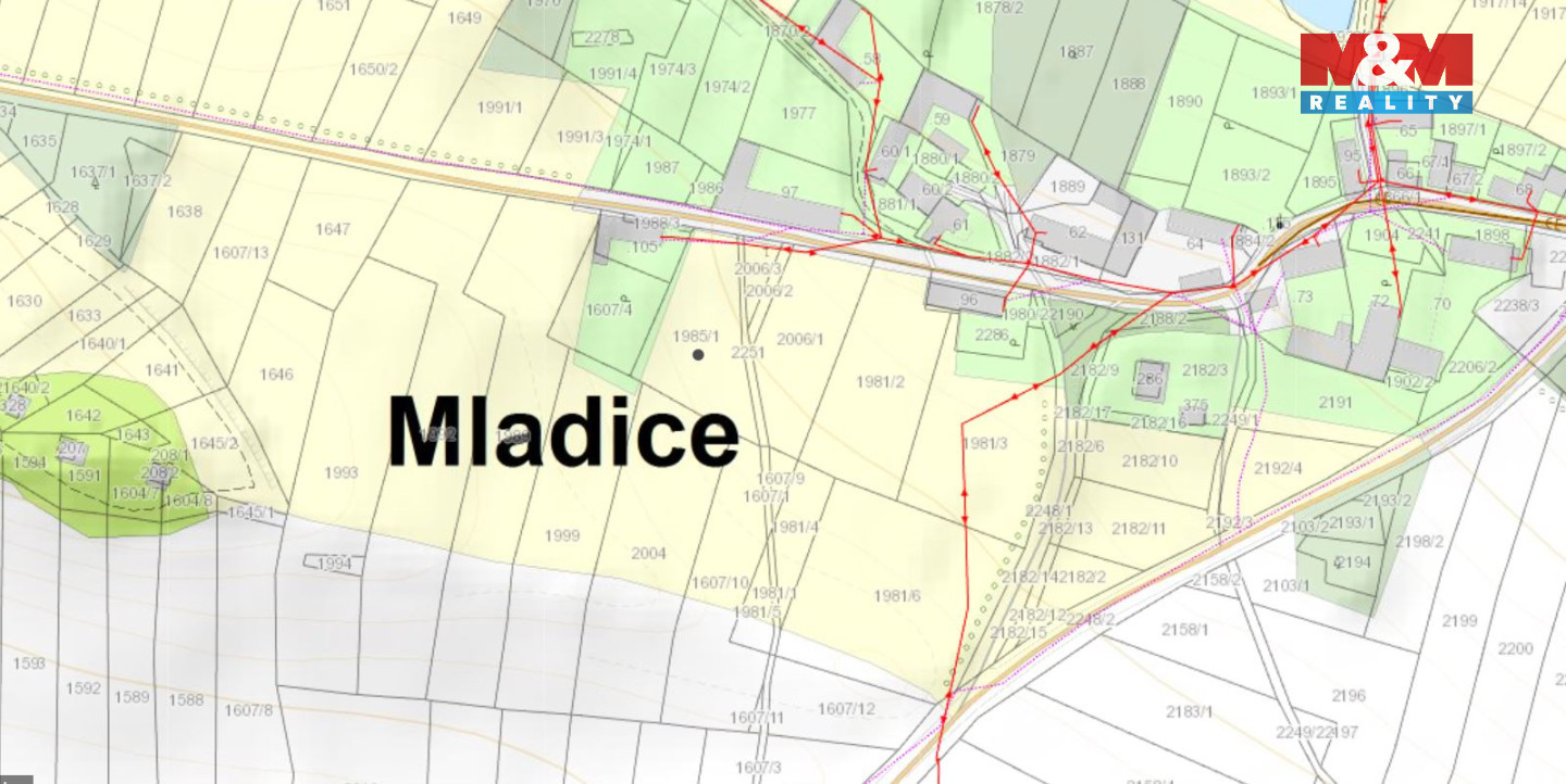 Hledáte klidné místo k výstavbě vysněného rodinného domu nebo skvělou investiční příležitost? Nabízíme k prodeji soubor pozemků o celkové rozloze 5.916 m² v malebné vesničce Mladice, části obce Zavlekov. Nemovitost je situována na kraji obce a dle územního plánu je stanovena pro výstavbu rodinného domu s 1. nadzemním podlažím a obytným podkrovím. Polovina pozemků s p.č. 1985/1 a 2006/3, přiléhajících k silnici, je určena k zástavbě. Zbylá část pozemků s p.č.1607/10, 1607/9, 1981/4, 1981/5 může sloužit jako soukromý sad nebo zahrada, čímž získáte otevřený, velký prostor nejen pro odpočinek, ale i k zahradničení. Elektrická přípojka je dostupná na hranici pozemku. Vzhledem k absenci vodovodu a kanalizace v obci je nezbytné počítat s výstavbou vlastní ČOV a vyhloubením studny. Lokalita nabízí klidné a příjemné prostředí s ohromujícím výhledem do přírody. Vřele doporučujeme prohlídku nemovitosti. V případě dalších dotazů se na nás neváhejte obrátit!