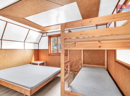 Hledáte klidné místo k rekreaci v krásné přírodě? Nabízíme k prodeji útulnou chatu na vlastním oploceném pozemku o velikosti 486 m² v chatové oblasti u Starého rybníka ve Zbraslavicích, okres Kutná Hora. Dispozice chaty: V 1. nadzemním podlaží se nachází veranda, která slouží zároveň jako jídelna. Z ní je vstup do kuchyně a dále do prostorného obývacího pokoje s krbovými kamny, které dodávají chatě jedinečnou atmosféru. Pod schody do 2. patra je vstup do koupelny, kde najdete sprchový kout, umyvadlo a WC, a navazující úložný prostor, který je přístupný i zvenku. V 2. nadzemním podlaží jsou dvě plnohodnotné ložnice a menší pokoj, který dříve sloužil jako balkon. K dispozici jsou také další úložné prostory přístupné z chodby. Vybavení a pozemek: Chata je napojena na elektřinu. Voda je čerpána z vlastní kopané studny, která je rozvedena až do koupelny. Odpad z koupelny je sveden do jímky, která se nachází na pozemku. Na oploceném pozemku se dále nachází kůlna a bazén.