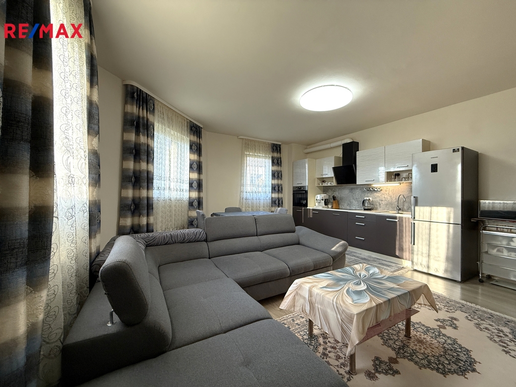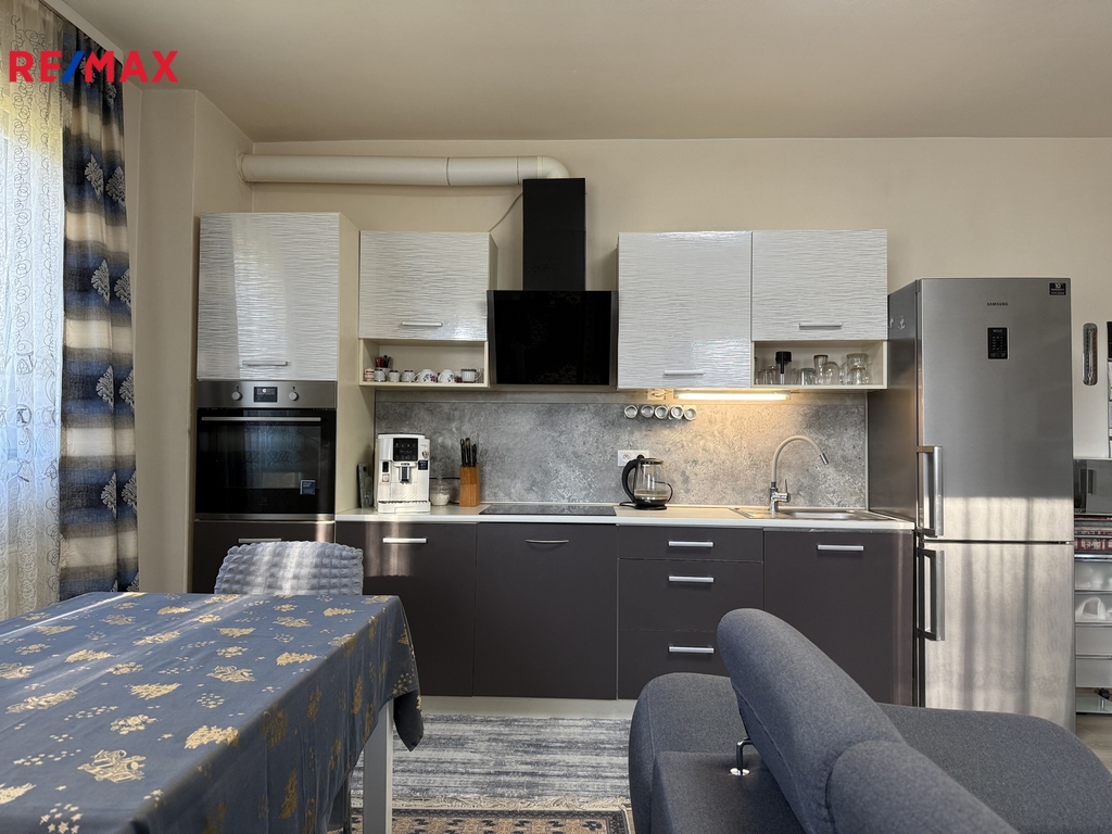 K prodeji je moderní bytová jednotka o dispozici 2+kk a podlahové ploše 52,30 m², umístěná v 1. nadzemním podlaží (přízemí) zánovní stavby, která vznikla jako součást developerského projektu v centru obce Zbůch. K bytu náleží výhradní užívání zděné sklepní kóje o velikosti cca 2 m², umístěné taktéž v 1. NP. Byt je vybaven kuchyňskou linkou s elektrickou varnou deskou, elektrickou troubou a odsavačem par. Koupelna je osazena sprchovým koutem, umyvadlem a přípojkou pro pračku. V obytných místnostech jsou laminátové podlahy o tloušťce 8 mm s izolačními podkladovými deskami (SUPELLEX). V předsíni, koupelně a samostatném WC jsou keramické obklady a dlažba, sanita značky Vitra S50 (SIKO). Dveře, zárubně a obložky jsou provedeny v CPL laminu (SEPOS). Dům je postaven ze železobetonového monolitu a z obou stran tepelně izolován dřevoskelnou štěpkou, z vnější strany doplněnou o vrstvu grafitového polystyrenu. Splňuje moderní technické standardy – energetická náročnost budovy je ve třídě B. Vytápění i ohřev teplé vody zajišťuje společné domovní tepelné čerpadlo. Okna jsou plastová s trojskly, elektroinstalace je v mědi (230/380 V) a rozvody vody i kanalizace jsou provedeny v plastu. V bytě je instalována vzduchotechnika v koupelně, komínové potrubí pro odvod vzduchu od digestoře v kuchyňském koutě a domovní telefon s funkcí videofonu. V domě se nachází sedm bytových jednotek. Obec Zbůch nabízí základní občanskou vybavenost – obchody, poštu, lékaře, mateřskou i základní školu. Je zde autobusové i vlakové spojení. Plzeň – Borská pole jsou autem dostupná přibližně za 10 minut a nájezd na dálnici D5 za pouhé 3 minuty. Koupi bytu lze financovat hypotečním úvěrem, který vám rádi pomůžeme zajistit.