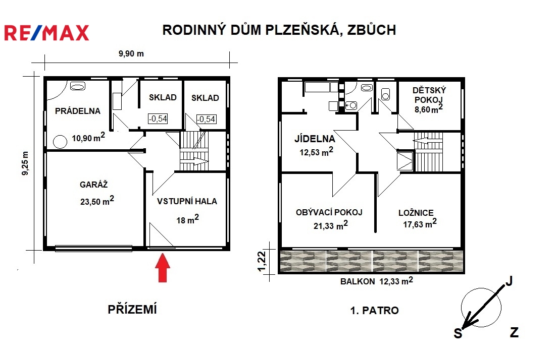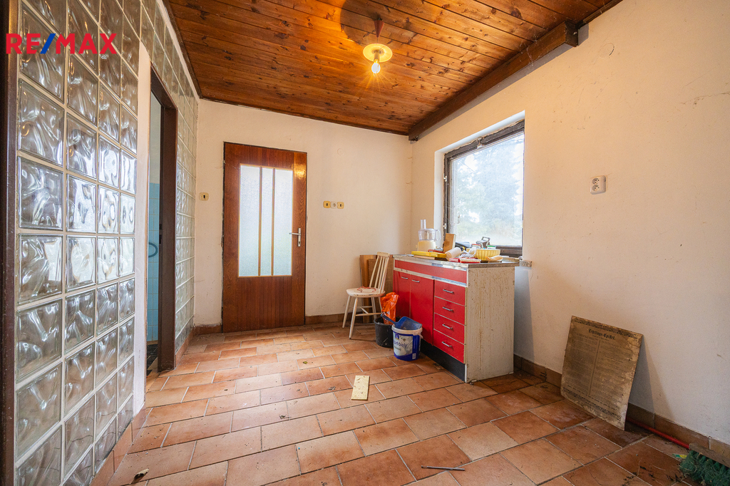 Nabízíme prodej rodinného domu o zastavěné ploše 92 m2, s celkovou plochou pozemku 1 458 m2 ve Zbůchu, ul. Plzeňská. Samostatně stojící zděný dům (typ Šumperák z roku 1968) je dvoupodlažní s vestavěnou garáží. Přední část domu s balkonem je orientována severozápadním směrem. Za domem se nachází další praktický zděný domek s velkou garáží, dalšími sklady a sociálním zařízením o zastavěné ploše 66 m2. Samotná zahrada má plochu 1 300 m2. Přízemí rodinného domu tvoří garáž, vstupní hala, prádelna, technické místnosti a sklad. V horním obytném patře jsou dvě ložnice (17,60 a 8,60 m2), prostorný obývací pokoj (21,33 m2), pěkná jídelna, kuchyňka, koupelna a toaleta. Dispozice a orientace jsou patrné z přiloženého plánku. Dům je vhodný k rekonstrukci. V rámci ní je nutno postavit část plotu mezi sousedním domem. V roce 2014 byla vyměněna okna za plastová. K vytápění slouží plynový kondenzační kotel (Vaillant ecoTEC plus 256/5-5), ohřev vody je zajištěn elektrickým bojlerem 160 l z roku 2022 (Dražice). Je zde zavedena motorová elektřina (400 V). Voda je odebírána z kopané studny. Vodovodní potrubí obecní je vedeno v ulici Na Výhledech. Dům je vystavěn z cihel (děrovaných), strop mezi podlažími je monolitický (železobetonová deska), nosnou konstrukcí ploché střechy jsou trámy (I nosiče). Dispozici 1. patra je možné změnit. Bude předána kompletní původní projektová dokumentace. Obec Zbůch se nachází 16 km daleko jihozápadním směrem od Plzně. Je zde kompletní občanská vybavenost. Užitné plochy: přízemí 73,50 m2, 1.patro 81,57 m2.