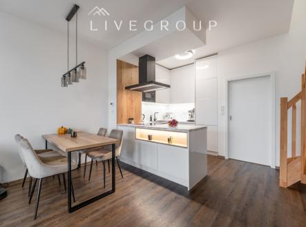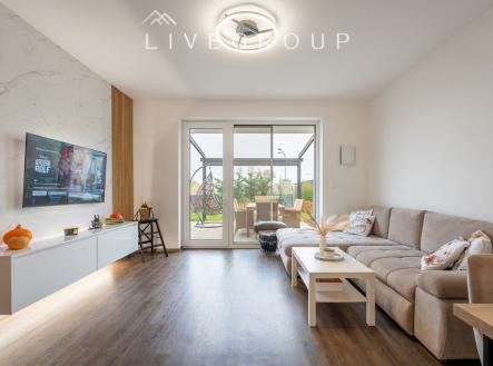 LIVEGROUP CZ představuje byt 3+kk o rozloze 78 m² se soukromou zahradou o velikosti 124 m², který spojuje nadčasovou eleganci, prostor a výhled do zeleně. Dispozice zahrnuje dvě ložnice, koupelnu s vanou a toaletou, samostatnou toaletu a velkorysý obývací pokoj s kuchyní a jídelnou o ploše 28 m². Obývací část plynule navazuje na krytou terasu s pergolou se screenovými roletami o velikosti 13 m² a rozsáhlou zahradu, která nabízí ideální prostor pro hry, relaxaci nebo pro domácí mazlíčky. Developer u tohoto komorního rezidenčního bydlení kladl důraz na kvalitu použitých materiálů, které vynikají estetikou, odolností a komfortem. Majitel nabízí vilabyt k prodeji v nadstandardním provedení s veškerým vybavením na míru včetně kuchyňské linky se spotřebiči. K dalšímu vybavení patří rekuperace, vlastním kondenzačním kotel, trojskla s elektrickými venkovními žaluziemi, teplovodní podlahové vytápění a kvalitní vinylové podlahy. Celý projekt spadá do energetické třídy C, což zajišťuje úsporný provoz a vysoký standard bydlení. Součástí rezidenčního areálu je zázemí pro pohodlný život: v blízkém okolí je dětské hřiště, obchod i restaurace, poliklinika a pošta. Základní i mateřská škola je dostupná během několika minut chůze po bezpečné cestě. Vlastní parkovací místo je zajištěno přímo u vstupu do bytu. Velký sklepní prostor o velikosti 5,40 se nachází v 1.PP bytového domu. Byt se nachází na okraji města Zbýšov ve čtvrti Padělky, obklopené zelení a klidem, přesto jen několik minut od centra města. Okolí nabízí ideální prostředí pro procházky. Cesta autem na okraj Brna trvá přibližně 20 minut, autobusová zastávka je vzdálena jen 2 minuty chůze. Tento byt představuje jedinečnou příležitost k bydlení v prostředí, kde se harmonicky propojuje moderní komfort, nadstandardní kvalita a přírodní klid, a to vše nedaleko centra Brna. Více informací Vám poskytne pan Michal Klement - LIVEGROUP CZ s.r.o.