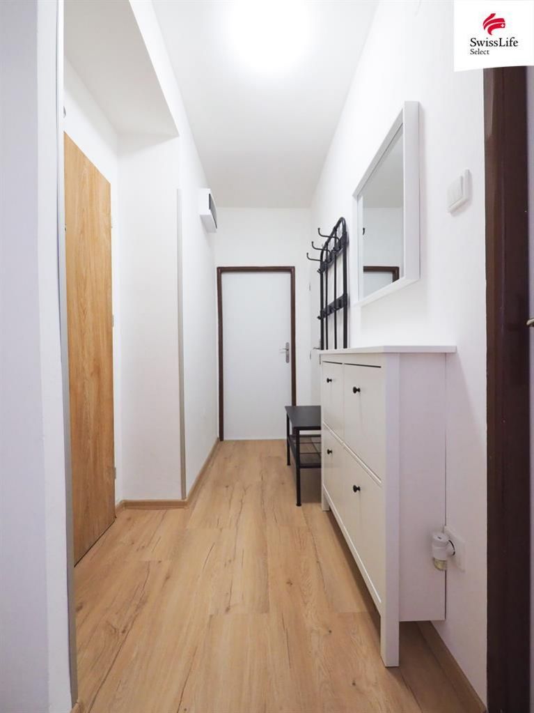 Nabízíme k dlouhodobému pronájmu byt v osobním vlastnictví o dispozici 2+KK situovaný ve 4. nadzemním podlaží pětipodlažního zděného domu (bez výtahu). Celková podlahová plocha bytové jednotky včetně příslušenství je 53,30 m2. V této výměře není započítána plocha balkonu 3 m2, který k jednotce patří. Příslušenstvím bytu je sklep umístěný v 1. nadzemním podlaží domu o ploše 2,30 m2. Dispoziční řešení bytu: předsíň (4,20 m2), kuchyňský kout (8,28 m2), pokoj (17,75 m2), pokoj (15,50 m2), koupelna (3,54 m2) a WC (0,90 m2). Byt je po výrazné modernizaci zahrnující rekonstrukci bytového jádra (nové rozvody, kuchyňská linka, nové sanitární vybavení/keramické obklady), položení podlahové krytiny (vinyl) a osazení vstupních bezpečnostních protihlukových a protipožárních dveří. Bytový dům prošel dílčí revitalizací: rekonstrukce střechy, výměna oken a vstupních portálů, zateplení obvodového pláště budovy, výměna domovních rozvodů. Ústřední dálkové vytápění a ohřev teplé vody s centrálním zdrojem horkovodem. Poloha domu v klidné části městské zástavby s dobrou dostupností služeb (MŠ, ZŠ, MHD, síť obchodů a služeb).