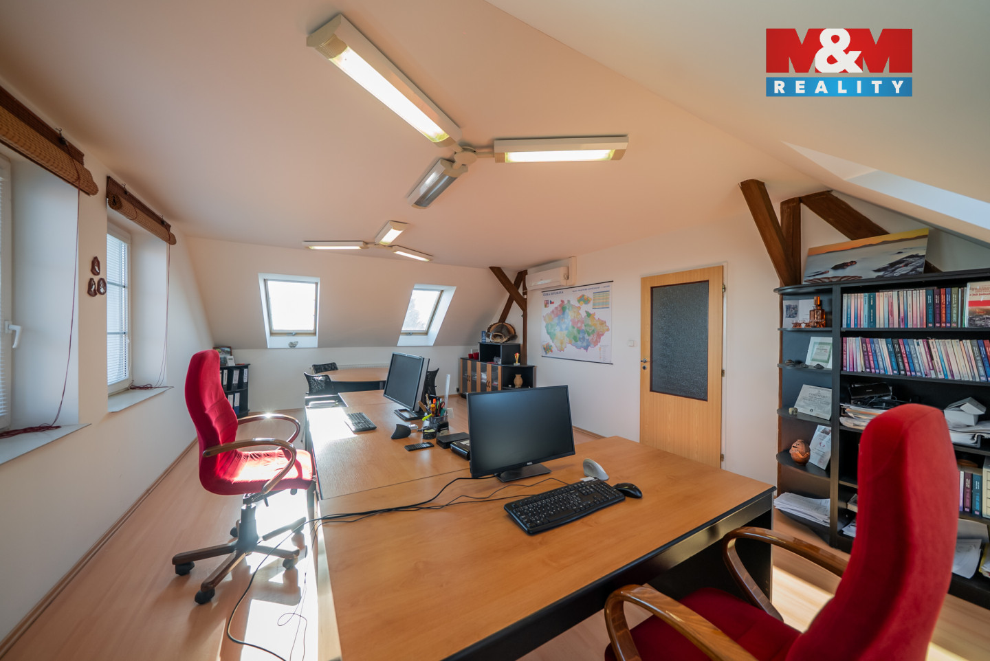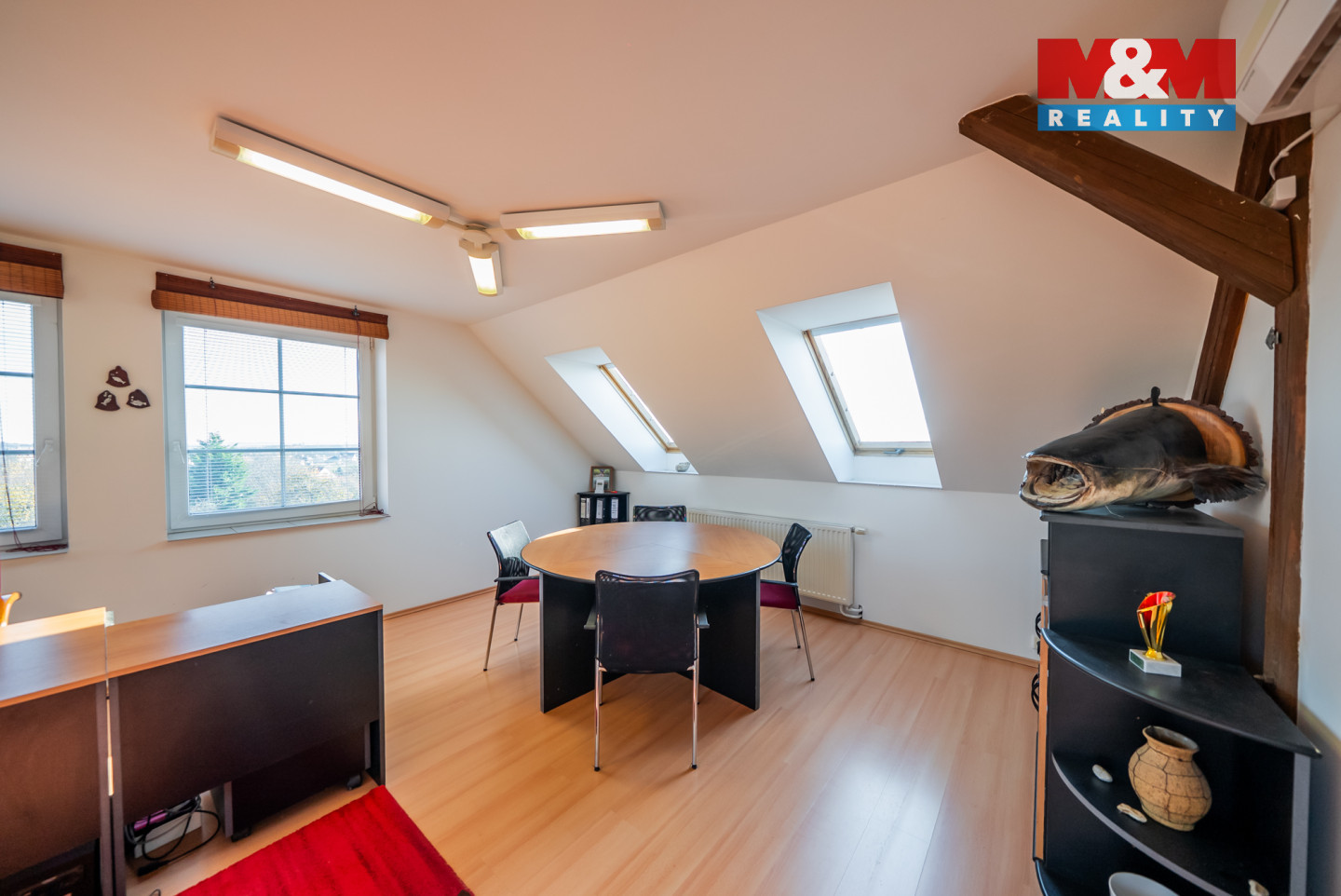 Samostatný komerční areál nabízí ideální zázemí pro firmu hledající klidné, efektivní a bezpečné prostředí s výbornou logistickou dostupností. Lokalita mimo dálnici neznamená odlehlost – naopak, přístup je plynulý a oblast nabízí dostatek kvalifikovaných pracovníků. Prostory jsou vhodné jako sídlo firmy se sklady, lehkou výrobou či kombinovaným provozem. Vytápěné a udržované prostory/sklady mají vstup z nádvoří i z administrativní části. V patře se nachází pět klimatizovaných kanceláří, kuchyňka, koupelna a toaleta o ploše cca 157 m². Vstupní část doplňuje šatna a sociální zázemí. Areál je plně samostatný a nabízí 13 uzavíratelných garáží, 4 zastřešená parkovací stání a možnost parkování možnost parkování nákladních vozidel (kamionů) na vlastním pozemku. Výhodou je také flexibilita dispozic s možností úprav či rozvoje dle potřeb nového provozu. Objekt je možné pronajmout.