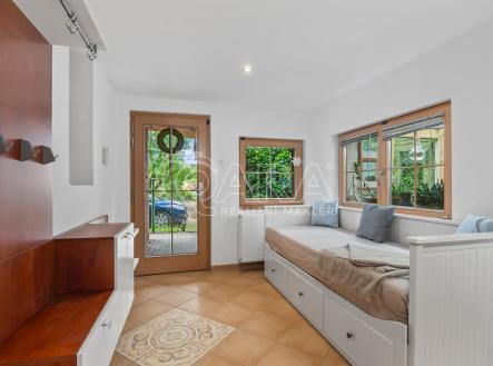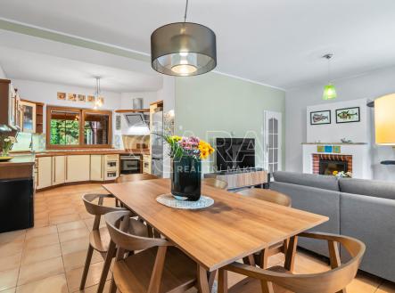 Hledáte velký dům v klidné lokalitě, ale zároveň v blízkosti Prahy? Chcete dům se zahradou, kde najdete klid, soukromí a příjemným stín v letních vedrech? Místo kde si bezpečně můžou hrát vaše děti, zatímco vy se věnujete přátelům? Pokud právě takový dům hledáte, možná pro vás mám ten pravý - pojďte se podívat se mnou… Patrový podsklepený dům o dispozici 4+kk a podlahové ploše téměř 200 metrů čtverečních nabízí dostatek prostoru pro každého člena vaší rodiny. V přízemí domu najdete velký obývací pokoj s kuchyňským koutem, který je kompletně vybavený spotřebiči (horkovzdušná i mikrovlnná trouba, lednice, myčka, varná deska i odsavač par). Dále v přízemí domu najdete velkou obytnou halu, toaletu, koupelnu se sprchovým koutem a dalším toaletou a bidetem, a zimní zahradu. Je zde také velká ložnice vybavená klimatizací, elektricky ovládanými střešními okny a přístupem do domácího wellness centra. V patře se pak nachází další dva pokoje - oba jsou pro komfortní užívání vybaveny klimatizací. Součástí domu je i garáž, další parkovací místo je pak na vlastním oploceném pozemku. Vytápění domu a ohřev teplé vody je řešen tepelným čerpadlem. V přízemí je podlahové topení, v patře radiátory. Připojení k internetu je řešeno vzduchem. Dům je částečně podsklepený, sklep byl opravený a vlhkost vyřešena injektážemi. Ve sklepě se také nachází vlastní úpravna vody, napojená na vodovodní řad. Odpad je sveden do kanalizace. Dům se nachází na pozemku o celkové velikosti 836 metrů čtverečních, takže zahrada nabízí dostatek prostoru pro zahrádkářské ambice, tak i pro odpočinek. Na zahradě najdete skleník, vlastní studnu i rozvod vody po celé zahradě. Výhodou tohoto domu je jeho kolaudace jako rodinný dům, což v této lokalitě nenabízí mnoho nemovitostí, jelikož jsou oficiálně jen rekreační objekty. Dopravní obslužnost této lokality výrazně zlepší nová tramvajová trať do Zdib, která stejně jako plánované dokončení Pražského okruhu. Okolí domu pak nabízí celou řadu míst pro výlety, ať už pěšky nebo na kole. A blízkým přívozem se můžete dostat do protějších Roztok. Je tohle ta pravá nemovitost pro vás? Zavolejte mi a pojďme to spolu zjistit. Rád se s vámi domluvím na prohlídce.