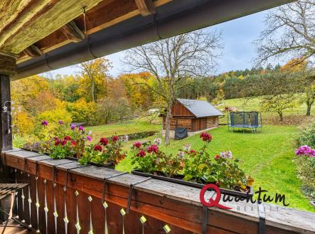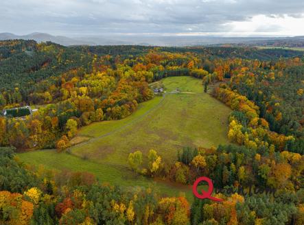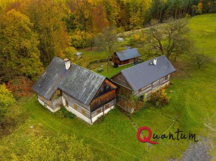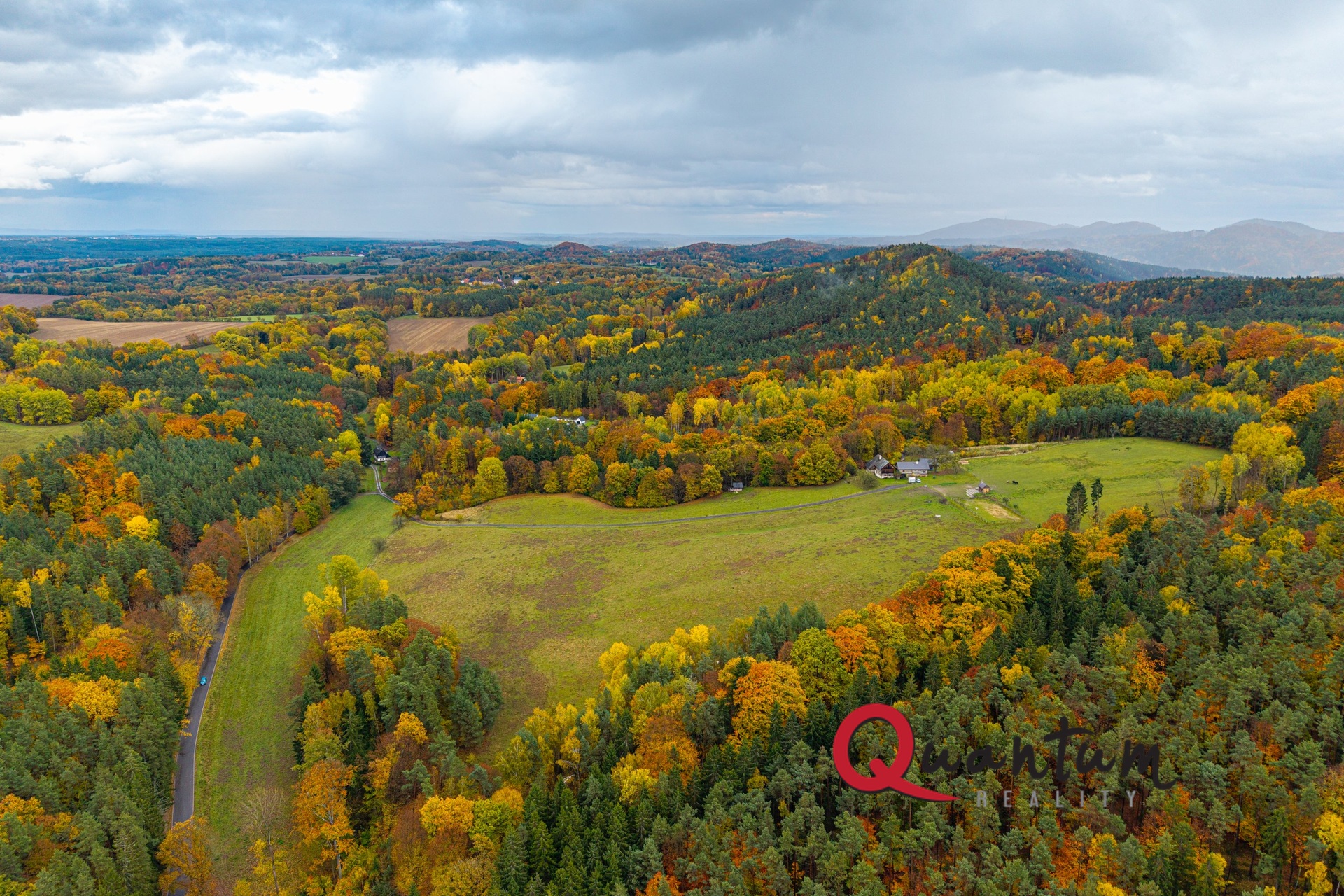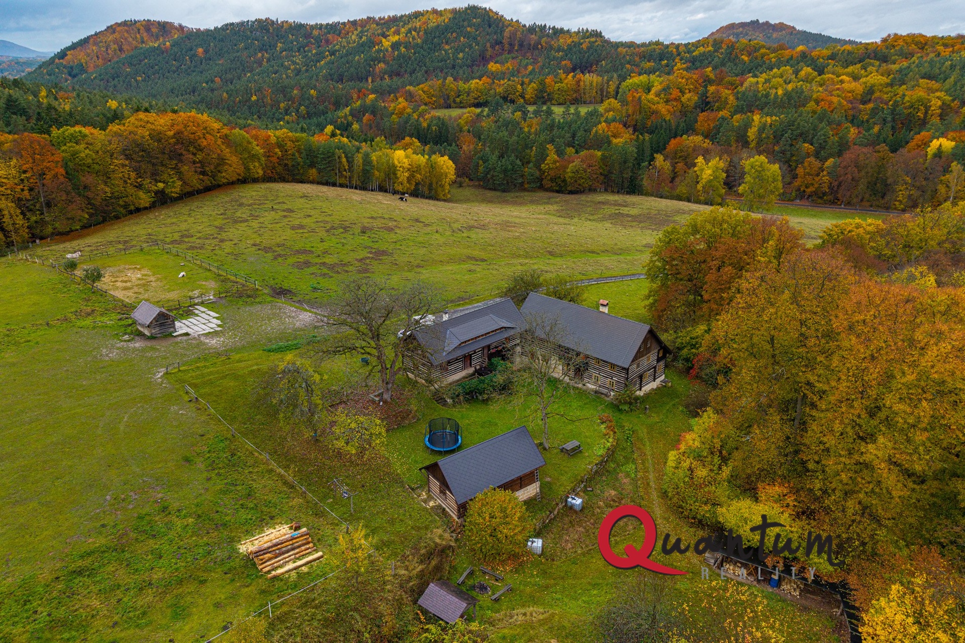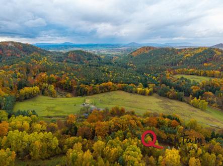 Usedlost s dvěma roubenými stavbami na pozemku 71 538 m² v CHKO Kokořínsko – Ždírecký Důl