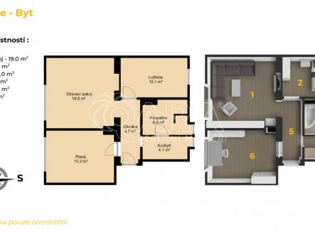K pronájmu moderní, slunný byt 3+KK (53 m2) v Žebráku