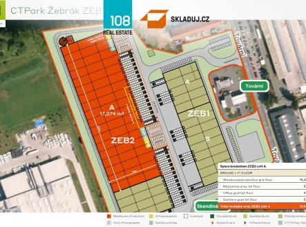 Na základě přímého pověření majitele (neplatíte provizi), Vám nabízíme prostory, které jsou vhodné pro skladování či lehkou výrobu k výstavbě na míru. K dispozici budovy ZEB1 a ZEB2, plocha 3 000 až 33 000 m2, max 24 000 m2 pod jednou střechou Specifikace - bezprašné podlahy s nosností 5t/m2 - rastr sloupů 12x24 m - světlá výška prostor 10 m - hydraulické můstky a přímé vjezdy - kanceláře, sociální zázemí nebo showroom dle požadavků klienta - dostatečné manipulační i parkovací plochy u budovy - sprinklery - LED osvětlení, sprinklery - foto je z části ilustrační - areál je ve výstavbě Lokalita - areál se nachází u exitu z dálnice D5, Praha 50 km