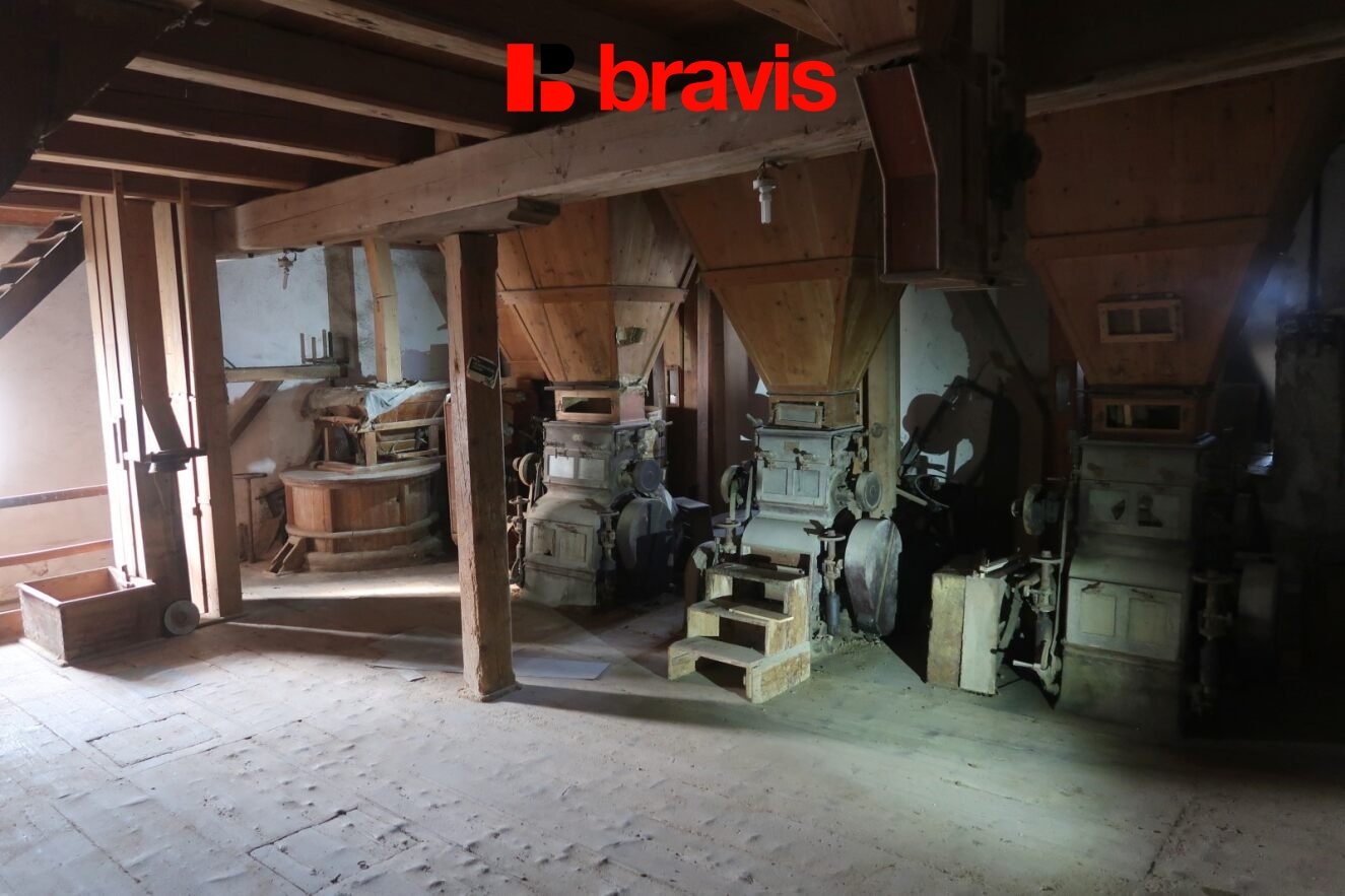 Rádi Vám představujeme prodej jedinečného objektu - Klapalův vodní mlýn v Želešicích v okrese Brno venkov, který stojí v centru obce. Historie sahá až do 14. století, kdy jsou první zmínky dochované stavby. Roku 1922 mlýn vyhořel, byl však v krátké době obnoven. Kolem roku 1930 došlo k rozsáhlé modernizaci, objekt je osazen dvěma Francisovými turbínami. Mlýn byl napájen vodním náhonem z řeky Bobravy, kde hladinu vzdouval jez. Technické údaje: • Užitná plocha domu: cca 264 m2 • Užitná plocha mlýnice: 335 m2 • Zastavěná plocha a nádvoří: 1478 m2 • Pozemek vč. koryta říčky: 12 531 m2 • Celkem pozemek až 15.115 m2 • Napojení na IS: elektřina 220/380 V, obecní vodovod a kanalizace, studna, plynový kotel. Obytná budova mlýna je přízemní zděná stavba s polozapuštěným suterénem. V přízemí je obytná část 4 + 1 (136 m2). Ve dvou místnostech zachovány historické klenby. V místnostech se sníženými stropy lze klenby obnovit. Ve vstupním prostoru část pozdě renesanční štukové klenby. V suterénu možnost využití historického sálu (9,5m x 9,5m) s klenbami a středovým sloupem (dosud využíván jako technická místnost). Mlýnice je dvoupatrová zděná stavba s polozapuštěným suterénem. Jednotlivá podlaží mlýnice odděluje dřevěný trámový strop s prkennými podlahami. Technické vybavení mlýna se částečně dochovalo spolu se zarostlým náhonem, stavidlem, turbínovou kašnou a turbínovým domkem s pomocným plynosacím motorem Adam. V suterénu místnost s klenutým stropem. Součástí nemovitosti je obytný dům spojený s mlýnicí, přístavky, dvůr se zahradou, dva sklepy (21 m x 6,20m a 4 m x 6,60m), průjezdná stodola v zadní části a náhon ke mlýnu v délce asi 1 km (lze koupit i bez náhonu) Nemovitost je kulturní památkou zapsanou v ústředním seznamu kulturních památek ČR, což zaručuje jeho výjimečnost a prestižní charakter. Jakákoli další výstavba či rekonstrukce se posuzuje individuálně, avšak s ohledem na zachování kulturní hodnoty stávající stavby. Přičemž existuje prostor pro rekonstrukci i moderní úpravy při zachování historické hodnoty objektu. Tento objekt nabízí kombinaci historie, prestiže a investičního potenciálu – ať už pro rekonstrukci nebo polyfunkční využití. Máte zájem o prohlídku nebo více informací? Neváhejte se na nás obrátit. Rádi Vám zajistíme prohlídku.