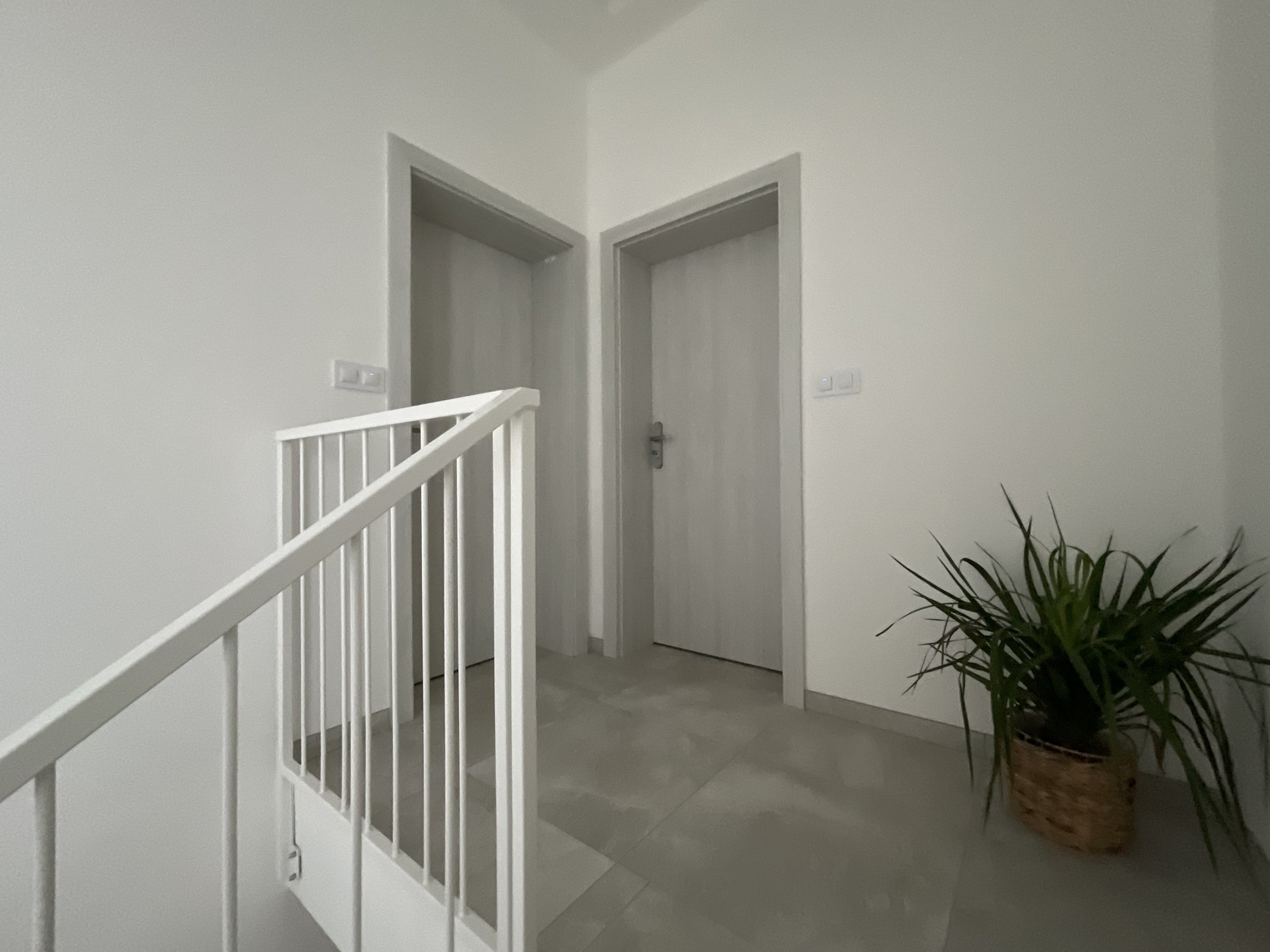 Ve výhradním zastoupení majitele Vám nabízíme pronájem komplet vybaveného bytu v Želešicích. Byt se nachází v domě se 4 bytovými jednotkami. K bytu náleží sklepní kóje 2,3m2 a kryté parkovací stání. Byt č. 4 s dispozicí 2+KK se nachází v 2.NP o výměře 53m2 + balkon 6,1m2. Vybavení bytu: Obývací prostor s kuchyňským koutem: vestavěná kuchyňská linka na míru s indukční varnou deskou, elektrickou troubou, myčkou, ledničkou s mrazákem, mikrovlnou troubou, digestoří, dřezem s baterií, dále jídelní stůl se 4. židlemi, sedačka, konferenční stolek, stolek pod TV a TV. Ložnice dvojlůžko s nočními stolky a vestavěnou skříní. Předsíň- předsíňová stěna. Vestavba s pračkou AEG a vlastním plynový kotel. Koupelna je vybavena vanou, umyvadlem, skřínkou pod umyvadlem a otopným žebříkem. Podlahy vinylové, v koupelně a na toaletě nadstandartní obklady a dlažba, interiérové dveře se zárubněmi jsou sladění se dekory podlah, dveře od bytu. Podlahové vytápění ve všech místnostech. Venkovní žaluzie a klimatizace ve všech místnostech. Součástí pronájmu je parkovací stání , sklep o výměře 2,3m2 a společné prostory u domu. Cena nájmu: 24.000,-Kč Zálohy na služby ve výši 4.500,-Kč (vytápění, studená voda a ohřev teplé vody, elektřina+ služby). Majitelé požadují kauci - jistotu ve výši 48.000,-Kč Lokalita se vyznačuje dobrou občanskou vybaveností. Velkou výhodou je dobrá dostupnost do centra Brna, cca 15 minut autem. V těsné blízkosti Želešice se nacházejí velká obchodní centra Olympie, Avion, Futurum, která nabízejí celou škálu nákupních možností i zábavy.