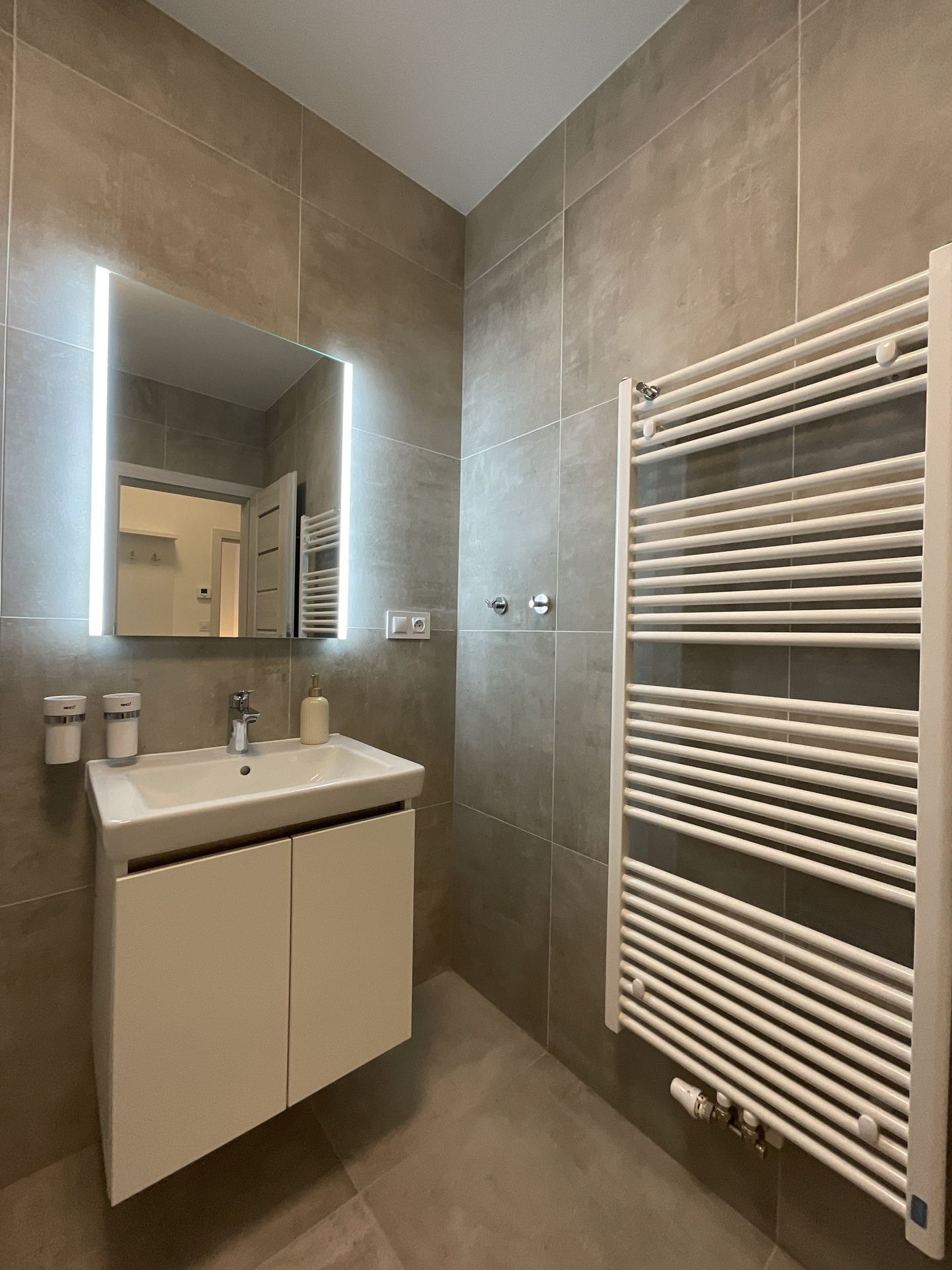 Ve výhradním zastoupení majitele Vám nabízíme pronájem komplet vybaveného bytu v Želešicích. Byt se nachází v domě se 4 bytovými jednotkami. K bytu náleží sklepní kóje 2,3m2 a kryté parkovací stání. Byt č. 3 s dispozicí 2+KK se nachází v 2.NP o výměře 50,8m2 + terasa 10m2. Vybavení bytu: Obývací prostor s kuchyňským koutem: vestavěná kuchyňská linka na míru s indukční varnou deskou, elektrickou troubou, myčkou, ledničkou s mrazákem, mikrovlnou troubou, digestoří, dřezem s baterií, dále jídelní stůl se 4. židlemi, stolek pod TV a TV a skříň. Ložnice dvojlůžko s nočními stolky a skříní. Předsíň- předsíňová stěna. Vestavba s pračkou AEG a vlastním plynový kotel. Koupelna je vybavena vanou, umyvadlem, skřínkou pod umyvadlem a otopným žebříkem. Podlahy vinylové, v koupelně a na toaletě nadstandartní obklady a dlažba, interiérové dveře se zárubněmi jsou sladění se dekory podlah, dveře od bytu. Podlahové vytápění ve všech místnostech. Venkovní žaluzie a klimatizace ve všech místnostech. Součástí pronájmu je parkovací stání , sklep o výměře 2,3m2 a společné prostory u domu. Cena nájmu: 22.000,-Kč Zálohy na služby ve výši 4.500,-Kč (vytápění, studená voda a ohřev teplé vody, elektřina+ služby). Majitelé požadují kauci - jistotu ve výši 44.000,-Kč Lokalita se vyznačuje dobrou občanskou vybaveností. Velkou výhodou je dobrá dostupnost do centra Brna, cca 15 minut autem. V těsné blízkosti Želešice se nacházejí velká obchodní centra Olympie, Avion, Futurum, která nabízejí celou škálu nákupních možností i zábavy.