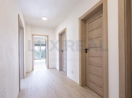 Ve výhradním zastoupení majitele Vám nabízíme pronájem bytu v Želešicích. Byt se nachází v domě se 7 bytovými jednotkami. Dispozice bytu 2+KK o výměře K bytu náleží sklepní kóje a parkovací stání. Pronájem bytu č. 3 s dispozicí 2+KK se nachází v 1.NP o celkové ploše 71,4 m2 včetně technické mistnosti + balkon 6m2. K dispozici sklep 4,3m2 a kryté parkovací stání. Vybavení bytu: vestavěná kuchyňská linka na míru s indukční varnou deskou, elektrickou deskou, myčkou, ledničky s mrazákem, mikrovlnou troubou, digestoří, dřevem s baterií. Koupelna je vybavena velkým sprchovým boxem, vanou, umyvadlem, přípravou na pračku a otopným žebříkem. Podlahy vinylové, v koupelně a na toaletě nadstandartní obklady a dlažba, interiérové dveře se zárubněmi jsou sladění se dekory podlah, dveře od bytu. Podlahové vytápění ve všech místnostech. Cena nájmu: 22.500,-Kč Zálohy na služby ve výši 3.500,-Kč (vytápění, studená voda a ohřev teplé vody, elektřina). Majitelé požadují kauci - jistotu ve výši 30.000,-Kč Lokalita se vyznačuje dobrou občanskou vybaveností. Velkou výhodou je dobrá dostupnost do centra Brna, cca 15 minut autem. V těsné blízkosti Želešice se nacházejí velká obchodní centra Olympie, Avion, Futurum, která nabízejí celou škálu nákupních možností i zábavy.