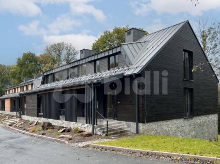 Prodej luxusního bytu 1+kk, 31m2, prostorný balkon, s designovými prvky v Hojsově Stráži - Brčálník. Tato lokalita, se těší stále větší oblibě. Byt v novostavbě z roku 2020 je situován v 2.(posledním) patře s jihozápadní orientací, nabízející nádherné výhledy na okolní kopce přes velká okna. Majitelé, kteří jsou nejen manželé, ale i designeři si bytovou jednotku zařizovali, pro svůj druhý domov. Na vybavení rozhodně nešetřili, částka zařizovacích předmětů věhlasných značer, jako např. nadstandardní dubová podlaha princ parket, dveře do stavebního pouzdra, baterie hansgrohe/Axor od Philippe Starck, vestavný nábytek + nábytek a dekorace Vitra, zabudované spotřebiče myčka, pračka, lednice siemens, varná deska od Philippe Starck. Stůl od Jean Prouve, věšák od Charles and Ray Eames atp. přesáhla 1,6mil.Kč Kuchyňský kout je od Rakouský EGGER/Kaind dle vlastního návrhu, vestavná digestoř s odtahem Italské Faber. K nemovitosti patří jedno parkovací stání na pozemku a prostorný sklep.Toto místo uprostřed lesů a luk Vás jistě nadchne. Zde naleznete v dnešní době, svůj tolik ceněný, klid. Pro milovníky zimních sportů mám dobrou zprávu, na ski areál Špičák se z bytu dostanete do 10min. autem. Další devizou tohoto bytu je jeho poloha, zastávka ČD je vzdálena 500 metrů. Doporučujeme i z hlediska investice.