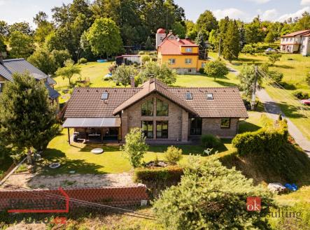 Stylový rodinný dům s celkovou užitnou plochou 218 m² s nerušenými výhledy do údolí Jizery stojí na krásném místě nad obcí Železný Brod v nádherné krajině podhůří Jizerských hor a Krkonoš. Poloha domu a zahrady poskytuje dostatek soukromí a zároveň dobrou dopravní dostupnost. Přízemí se skládá z velkorysého obytného prostoru s krbovými kamny, kuchyně s navazující zahradní krytou terasou, prostorné ložnice s šatnou, dětského pokoje, koupelny včetně toalety a bidetu, zádveří, dvou technických místností a schodišťového prostoru. V podkroví jsou dvě samostatné ložnice otevřené do krovu a druhá koupelna s toaletou. Energeticky úsporný zděný dům byl dokončen v roce 2006. Vytápění je řešeno kombinací tepelného čerpadla LG vzduch – voda a krbovou vložkou Bodart Gonay opatřenou horkovzdušnou ventilací s proměnlivými otáčkami a regulací teploty. V celém přízemí je rozvedeno teplovodní podlahové vytápění. V podkroví jsou nainstalovány radiátory. K dispozici máte vlastní 45 m hlubokou vrtanou studnu s artéskou vodou. Exteriér zdobí ručně pálené lícové cihly, které domu propůjčují nezaměnitelný originální vzhled. Samotná stavba je vyzděna z pórobetonových tvárnic Ytong opatřené parotěsnou zábranou. Na střeše byly použity tašky Bramac. K dispozici je garáž s dálkově ovládanými sekčními vraty. Na pozemku jsou dvě zpevněná parkovací stání. Zahrada okolo domu s několika vzrostlými stromy je z části oplocená. Na celém pozemku je instalován automatický zavlažovací systém Hunter. Veškerou občanskou vybavenost najdete v Železném Brodě vzdáleném 5 minut jízdy autem, cesta z okraje Prahy zabere cca 1 hodinu. Cena je k jednání. Těšíme se na vás při prohlídce tohoto jedinečného domu.