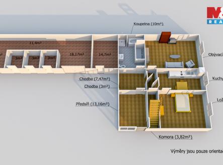 Nabízíme k prodeji samostatně stojící chalupu v malebné vsi Zemětice. Hlavní budova má užitnou plochu 91 m², hospodářské stavení 125 m² a pozemek 472 m². Jedná se o ideální místo pro ty, kteří hledají klidnou lokalitu v bezprostřední blízkosti přírody. (Mlýnský rybník je vzdálen jen 200 m.) Dům je napojen na obecní vodovod, elektřinu i plyn. Kanalizace je přivedena na nádvoří. Chalupa je podsklepená, má 1 nadzemní podlaží a zatím neobytné podkroví. Disponuje 4 místnostmi a krytou terasou. Na domu i hospodářském stavení je nová střecha. Při rekonstrukci si můžete chalupu přizpůsobit dle vlastních představ. Kompletní občanská vybavenost se nachází v obci Merklín, pouhé 2 km od Zemětic. Zastávka autobusu je vzdálená 300m. Dojezdová vzdálenost do Plzně je cca 25 min. (30km). Rádi vám pomůžeme s financováním koupě i případné rekonstrukce. Bližší informace získáte od makléře.