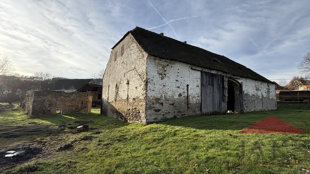 Nabízíme na prodej částečně podsklepenou bývalou zemědělskou usedlost, nyní rodinný dům (3+1; cca 90 m2) určený k rekonstrukci s navazující prostornou hospodářskou části (velká stáj/maštal s cihlovou klenbou a půdním prostorem vybízejícím k půdní vestavbě a velkou samostatně stojící průjezdnou stodolou s dřevníkem), uzavřeným dvorem kamennou zdí a zahradou 257 m2, stojící na okraji malebné šumavské vesničky Kadešice (540 m.n.m.) u Dražovic 2 km (obchod, tenisové kurty) v krásném podhůří Šumavy, nedaleko města Sušice 10 km, kde je veškerá občanská vybavenost. Možnost dokoupení navazujícího stavebního pozemku o výměře cca 1.860 m2 za cenu dohodou! Popis: částečně podsklepeno: 3x sklep (nová přípojka obecního vodovodu) s klenbou; přízemí: vstupní veranda, chodba se schodištěm do podkroví, koupelna (vana, umyvadlo, kotel na T.P. a el. boiler), technická místnost (WC, vodárna), obytná kuchyň (kuch. linka, dřez, plynový sporák na P.B., sporák na T.P.) s jídelnou, komora s klenbou a 2x pokoj (bez podlah); podkroví: podesta, podkrovní pokoj a půda (vhodná k vestavbě). Vedlejší stavby: navazující hospodářská část: prostorná stáj s cihlovou klenbou a kamennými koryty vč. půdního prostoru přístupného po venkovním žel. schodišti vhodného k půdní vestavbě například ateliéru či mezonetového apartmánu, obrovský dřevník, velká průjezdná stodola. Pozemek celkem: 1.527 m2; Zastavěná plocha a nádvoří: 1.270 m2; Zahrada: 257 m2; Možnost dokoupení navazujícího stavebního pozemku o výměře cca 1.860 m2 za cenu dohodou! Voda: vlastní kopaná studna a nová obecní přípojka; El.: 220/380 V; Vytápění a TUV: ÚT – kotel na T.P.; lokální – sporák na T.P. Velmi klidná vesnička s minimálním silničním provozem v podhůří Šumavy. Bývalá zemědělská usedlost s dochovanou zemědělskou částí s širokým potenciálem (obnovení stájí, renovace na vinárnu/pivnici či přestavba na apartmány či oblíbený glamping) a dobrým dosahem měst Sušice 10 km či Kašperské Hory 14 km. Nutno vidět!