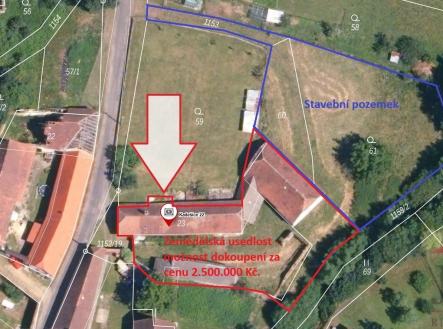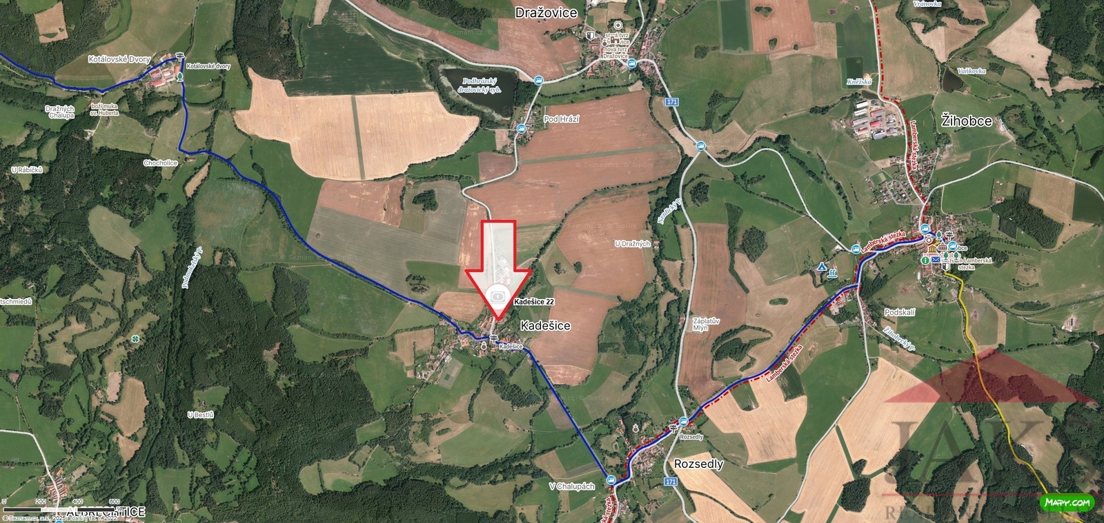 Nabízíme na prodej slunný, mírně svažitý, oplocený, pětistranný pozemek o výměře 1.860 m2, situovaný na okraji malebné šumavské vesničky Kadešice (540 m.n.m.) u Dražovic 2 km (obchod, tenisové kurty) v krásném podhůří Šumavy, nedaleko města Sušice 10 km, kde je veškerá občanská vybavenost. Dle platného územního plánu obce Žihobce, kam Kadešice spadají, je pozemek určený pro (BO) plochy bydlení (lze stavět i rekreační objekt). Přístup z obecní asfaltové cesty, kde je v dosahu obecní vodovod a elektřina. Možnost dokoupení navazujícího bývalého zem. stavení (3+1; 90 m2) s hospodářskou částí (velká stáj a stodola) určeného k rekonstrukci za cenu 2.500.000 Kč. Popis a poloha: pětistranný (pentagon), slunný, mírně svažitý, oplocený, pozemek s příjemným výhledem, ležící na severním okraji velmi klidné šumavské vesničky. Na východní straně pozemku protéká místní potůček oddělený plotem a stromořadím vrb zpevňující břeh (nehrozí záplava, minimální průtok). Přístup z obecní asfaltové komunikace. Pozemek celkem: cca 1.860 m2; Přesná výměra bude vyměřena podle geometrického plánu, přičemž hranici pozemku u stodoly lze ještě upravit (zvětšit či zmenšit). Rozměry: délka cca 42 m x šířka cca 35 m. Inženýrské sítě: Elektřina: v dosahu na hranici pozemku; možnost připojení po dohodě s firmou ČEZ; Voda: v dosahu v obecní cestě; možnost napojení na vodovodní řad; Odpad: nutno řešit jímkou či vlastní ČOV s přepadem do potůčku. Především malebná a velmi klidná poloha vesničky Kadešice v podhůří Šumavy mezi městy Sušice a Kašp. Hory, velikost pozemku zaručující dostatek soukromí a klidu a inženýrské sítě na hranici pozemku jsou hlavními výhodami tohoto pěkného pozemku. Nutno vidět klidnou lokalitu a velikost pozemku.