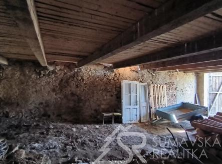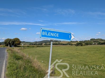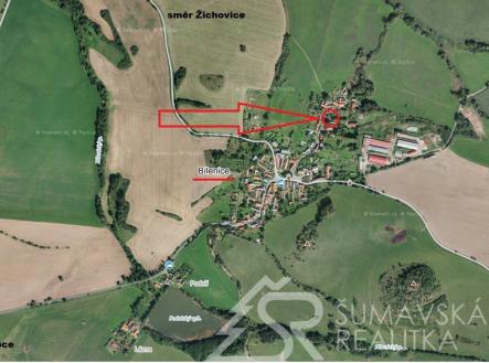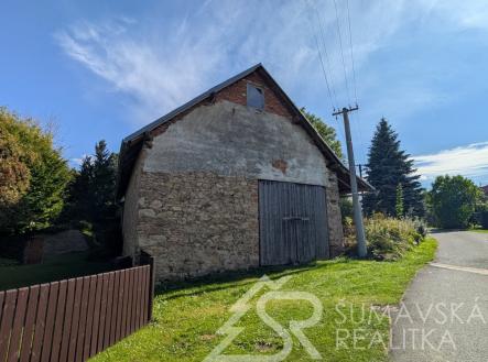 Pozemky: stavební pozemek o celkové výměře 396 m2, Lokalita: Pošumavská víska Bílenice v malebné a klidné, mírně zvlněné krajině Pošumaví, cca 14 km od Sušice – brány Šumavy, nebo 17 km od horského střediska Kašperské Hory. Velmi čisté prostředí bez průmyslu a exhalací, naprosto klidné. Dobrá dostupnost i v zimě, mírné podnebí – ale se Šumavou na dohled. Místo vhodné pro rekreaci i pro trvalé. Poloha: Klidné místo na okraji osady na konci „slepé cesty“, což vytváří klidnou a přívětivou atmosféru. Popis nemovitosti: Původní zemědělská stodola na obdélníkovém půdorysu 8,8 x 12,8 m má masivní zděné a silné zdi v kombinaci kámen – cihla. Vjezdová vrata jsou ze severní části do přízemí objektu, které tvoří jeden velký prostor. Z jižní části je umožněn vstup do podkrovní části. Původní dřevěný krov nevykazuje známky poškození a vyloženě si říká o krásnou půdní vestavbu. Na sedlové střeše je zatím použita vlnitá krytina a okapový systém z pozinkového plechu. Z jihozápadní části ke stodole přiléhá přívětivý pozemek, na kterém lze ještě realizovat stavební přístavbu, nebo ho využít k zázemí. K dispozici je stavební dokumentace se zaměřením stávajícího stavu stodoly i projekt na přestavbu na rekreační dům. Inženýrské sítě: Komunikační napojení - z obecní komunikace – dobrý přístup i v zimě. Voda – před objektem vede obecní vodovod, na pozemku je i hlavní uzávěr vody. Kanalizace – před objektem vede dešťová kanalizace. Elekřina – u objektu je sloup se vzdušným vedením elektřiny.