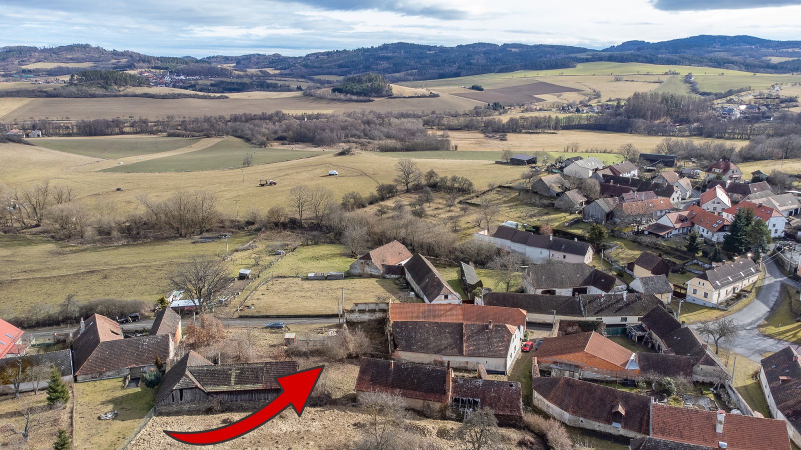 V malebné šumavské obci Kadešice u Sušice se nabízí výjimečná příležitost pro ty, kteří hledají místo s historií a autentickým charakterem. Předmětem prodeje je tradiční venkovské stavení, situované na rozlehlém pozemku o celkové výměře 1 950 m². Nemovitost se nachází v klidné části obce a představuje ideální „nepopsaný list papíru“ pro budoucího majitele, ať už se rozhodne pro citlivou rekonstrukci, nebo pro využití místa k nové výstavbě. Samotný dům je v původním stavu určeném ke kompletní rekonstrukci, přičemž jeho technický stav může být vyhodnocen i jako vhodný k demolici. Pro milovníky tradice však dům ukrývá skutečné poklady. V obytné části se nachází původní pec a několik zachovalých kachlí, které mohou posloužit jako základ pro obnovu dominanty interiéru. Vedle toho dům disponuje hospodářskou částí s klenutými stropy, které přímo vybízejí k tomu, aby se po citlivé obnově staly srdcem stylového bydlení. Další potenciál pro rozšíření nabízí vysoký půdní prostor nad celou zastavěnou plochou. Dominantou uzavřeného dvora, který poskytuje naprosté soukromí, je velká, částečně otevřená stodola o zastavěné ploše 158 m². Tato unikátní stavba stojí na masivních zděných cihlových sloupech, které jí dodávají netradiční vzhled. Její horní dřevěná část historicky sloužila jako sklad sena a dnes nabízí obrovský prostor pro kreativní využití, od zahradního ateliéru až po velkorysé společenské zázemí. Obrovskou výhodou je přítomnost kvalitního stavebního materiálu přímo na pozemku – původní kámen a dřevěné trámy jsou připraveny k dalšímu využití, což stavbě dodá autenticitu a novému majiteli ušetří náklady. Navazující zahrada o rozloze 1 475 m² je příjemně rovinatá, což z ní činí ideální místo pro relaxaci či zahradničení. Právě odtud se otevírá výhled na Žihobecký zámek. Z technického hlediska je dům připojen k elektřině (230/400V). Na hranici pozemku se nachází možnost napojení na obecní vodovod, odpady je nutné řešit vybudováním vlastní ČOV nebo septiku. Kadešice (545 m n. m.) nabízejí klidné bydlení v krásné přírodě s výbornou dostupností do Sušice (11 km) i Kašperských Hor (13 km). PENB se na tuto nemovitost nevztahuje