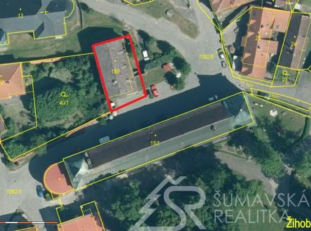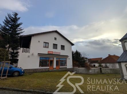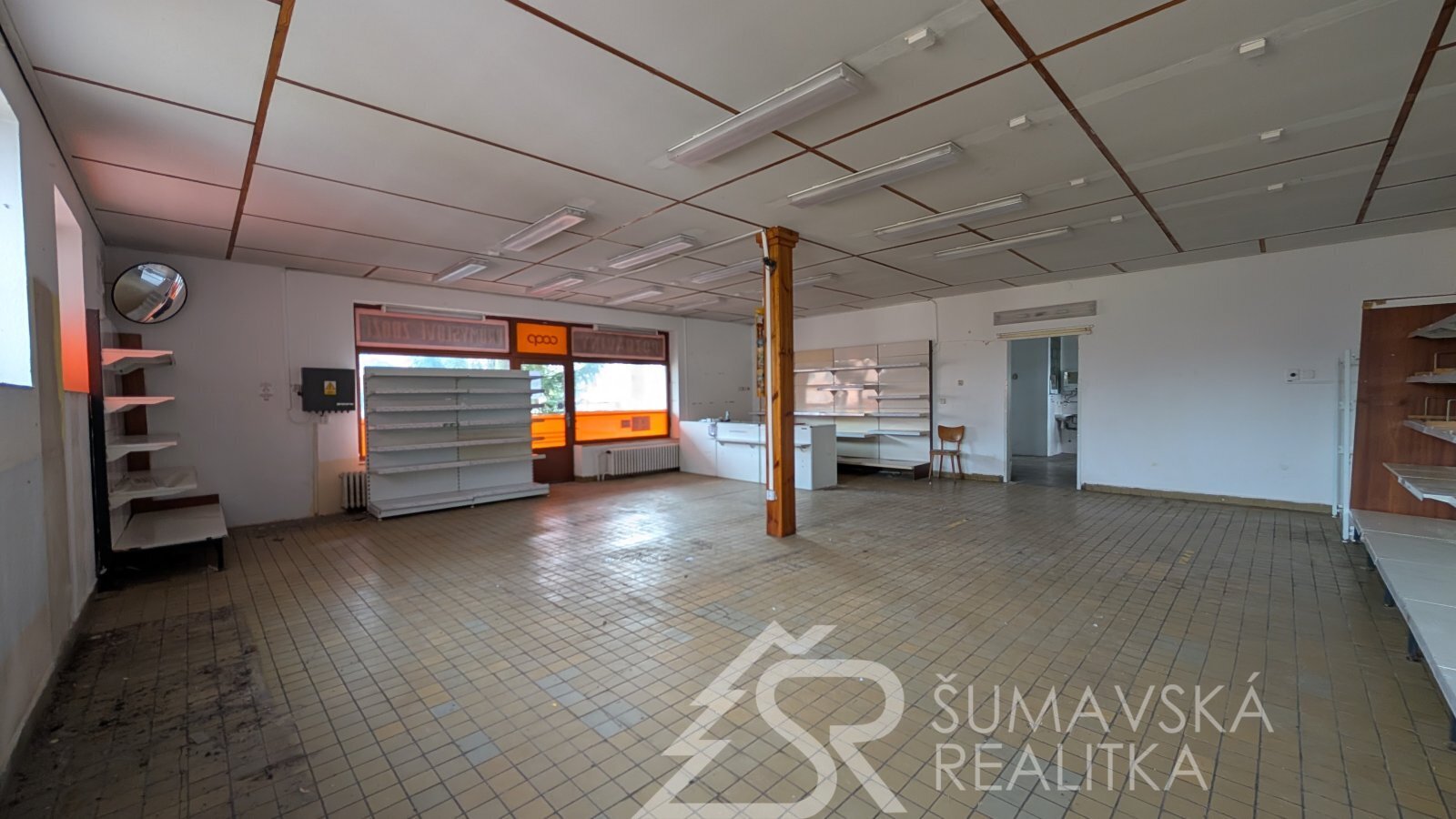 ZAVEDENÝ OBCHOD V CENTRU OBCE ŽIHOBCE. Pozemek: zastavěná plocha a nádvoří o výměře 399 m2. Lokalita: Pošumaví, Žihobce - obec s dávnou historií uváděná již v 11.století jako majetek Břevnovského kláštera. Dominantou je zde krásný novorománský kostel, který spolu se zámkem, volně přístupným přírodně krajinářským parkem a nenarušenou venkovskou zástavbou v jádru obce tvoří jedno z nejmalebnějších míst Pošumaví. Krásný rámec obci tvoří modravé pásmo šumavských hor s vrcholem Javorníku známého rozhlednou Žihobce jsou „kulisa do pohádky“, ke které patří i historicky doložený příběh kněžny Káči – prosté dívky, která se stala manželkou knížete Lamberka – pána zdejšího panství. Nevěříte? – přečtěte si jej – a přijeďte se podívat na tohle kouzelné místo, kde pohádka se může stát skutečností…. Počet obyvatel je 575, rozloha obce 25,81 km2, nadmořská výška 543 m, v obci se dále nachází zámek se zahradou, kostel Přeměnění páně, galerie Netopýr, obecní úřad, mateřská a základní škola, prodejna potravin, fotbalové hřiště, hospůdka na hřišti, venkovní bazén, rekreační chatky u sportoviště, dva tenisové kurty, sbor dobrovolných hasičů, divadelní soubor, ČOV. Popis: přímo v centru obce a to mezi kostelem a zámkem se nachází zavedená prodejna potravin. Jedná se o dvoupatrový objekt občanské vybavenosti, kdy v přízemí je jeden nebytový prostor (bývalá masna) který nyní sloužil jako kulturní centrum. V patře je pak rozsáhlý obchod se sklady a zázemím. Budova je klasicky zděná se sedlovou střechou. Celková podlahová plocha je 330 m2. Výhoda je dobré umístění v centru obce s vynikající dopravní obslužností, parkovacími místy a v těsném sousedství autobusové zastávky. Inženýrské sítě: Zavedena el.instalace 230/400 V zemním kabelem, přípojka vody z obecního vodovodu, odkanalizování do septiku, vytápění dálkové ze sousední kotelny, klimatizační jednotka i na ohřev, příprava TUV elektro bojlerem, osazen hromosvod. Údržba je na dobré úrovni.