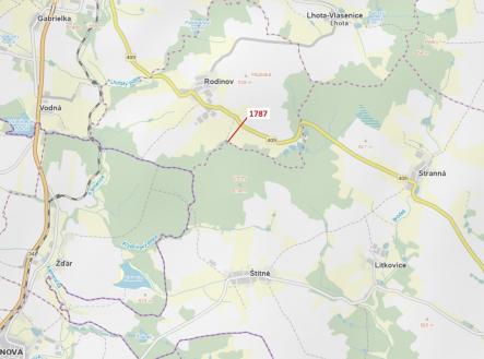 Lesní pozemek o výměře 288 m2, parcelní číslo 1787, podíl 1/1, katastrální území Štítné, obec Žirovnice, obec s rozšířenou působností Pelhřimov, okres Pelhřimov, Kraj Vysočina.